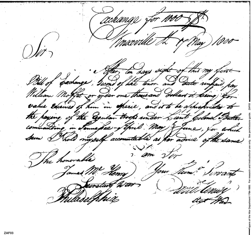 - Document: Payment to William Moffett for Specie for Pay of Troops in Tennessee