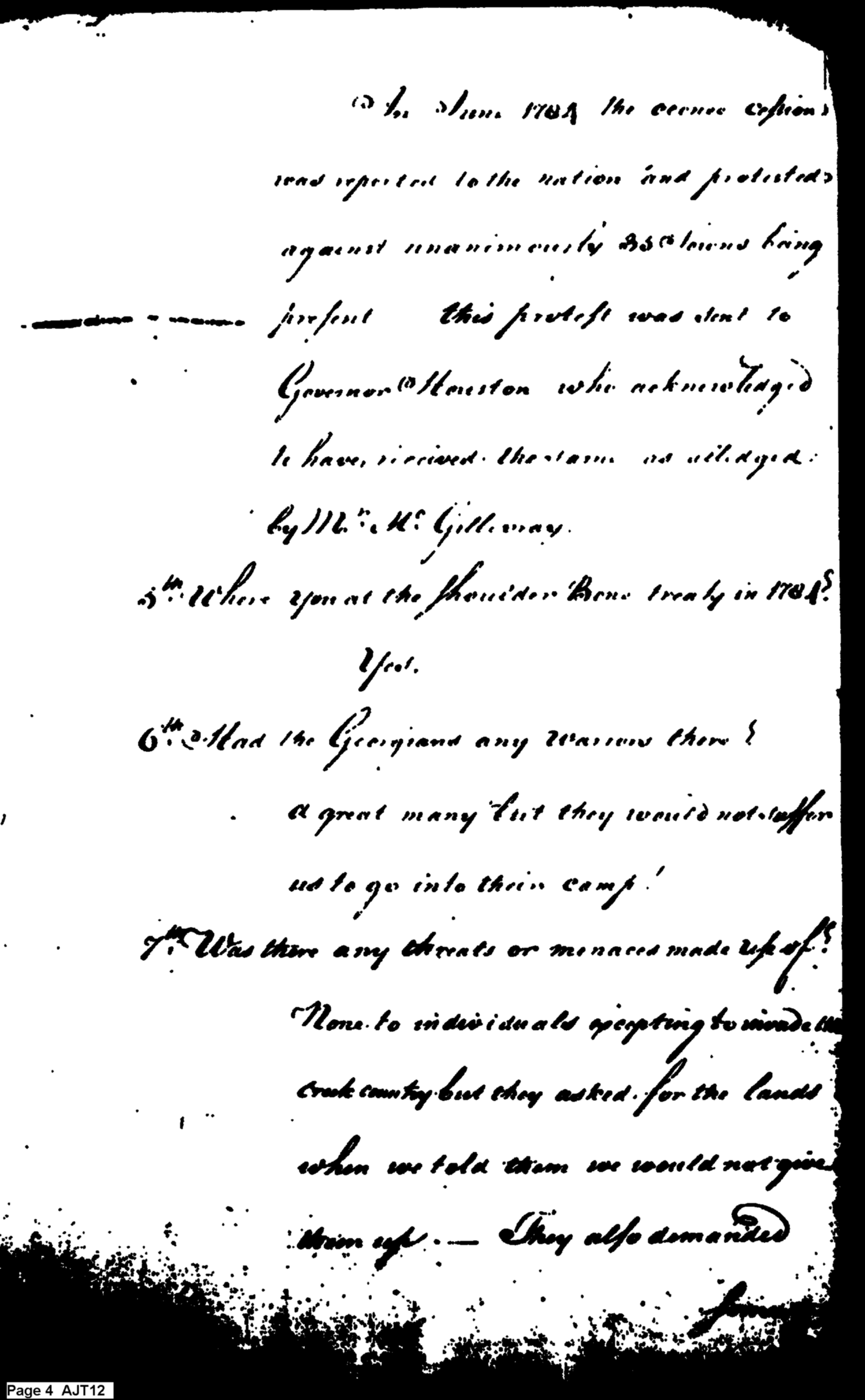 - Document: Knox's questions to Tallisee King regarding the Treaty at Galphinton