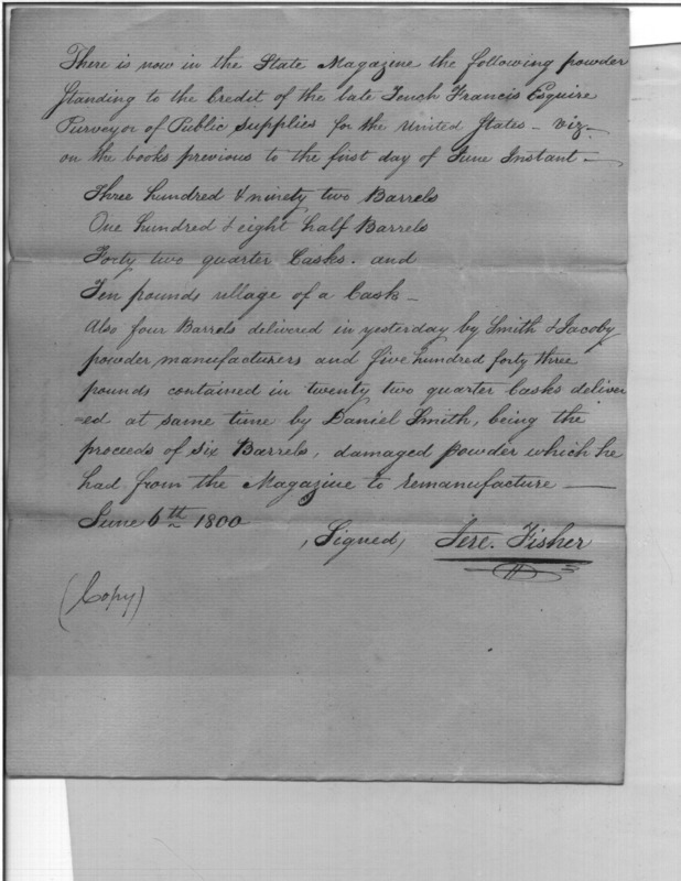 - In source: Collection: Correspondence, Reports, Returns, Bills, Accounts Current' Statements, Receipts, Vouchers and Contracts of Philadelphia Supply Agencies (Coxe and Irvine Papers), 1794-1842. (RG92)