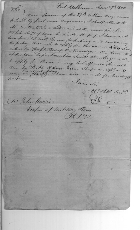 - In source: Collection: Correspondence (Letters Received, Letters Sent, and Accounts) of the Creek Factory, 1795-1814. (RG75)