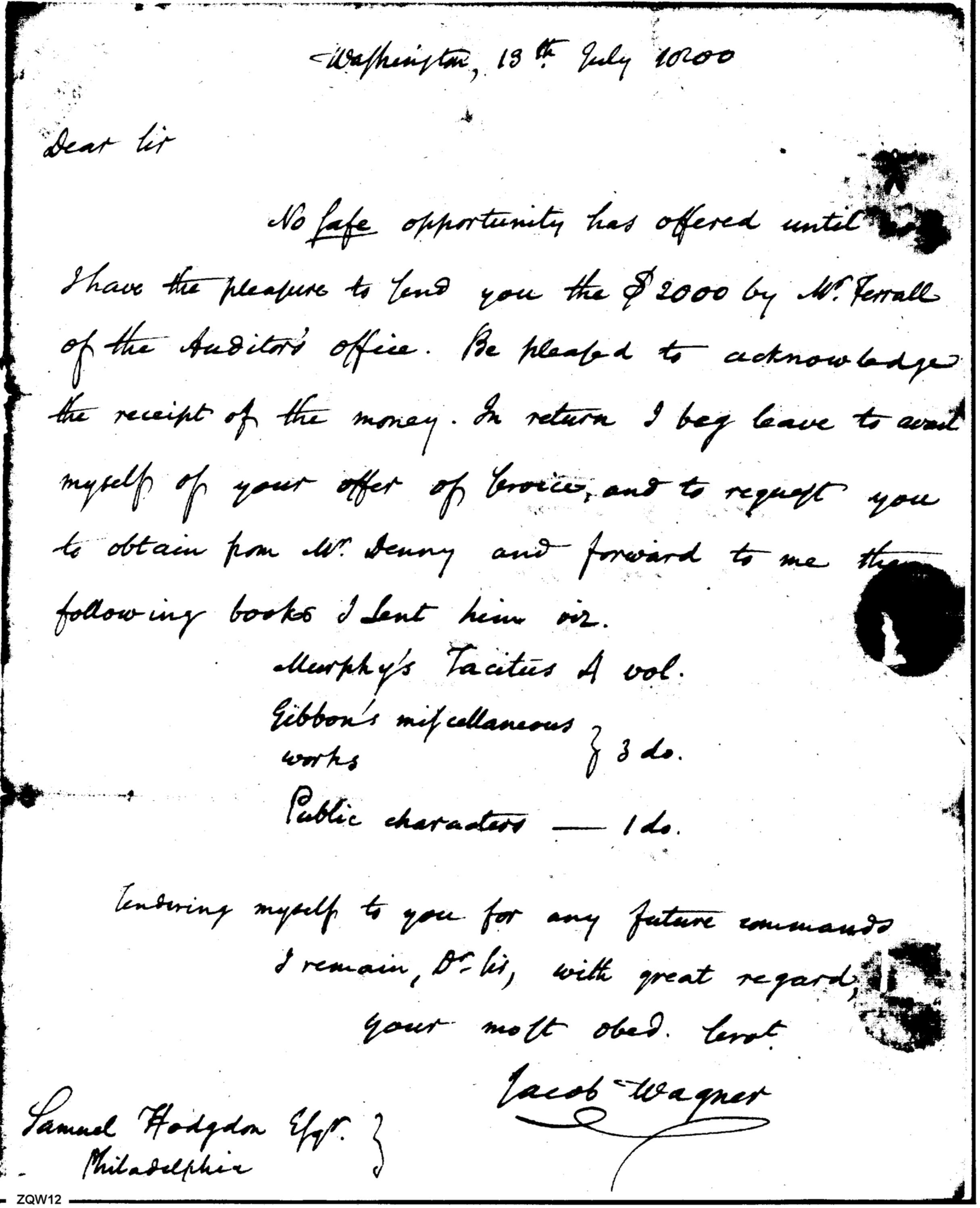 - Document: Requesting Mr. Denny to Forward Loaned Books, Etc.