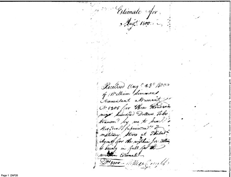 - In source: Collection: Receipts for Moneys Advanced (Advances), 1793-1855. (RG217)
