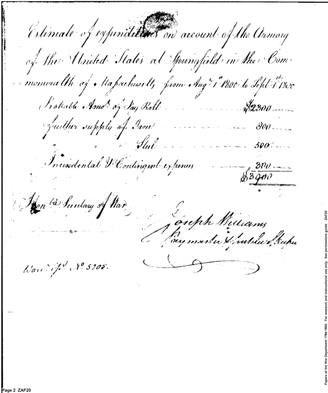 - Document: Estimate of Expenditures on Account of Armory at Springfield, Massachusetts