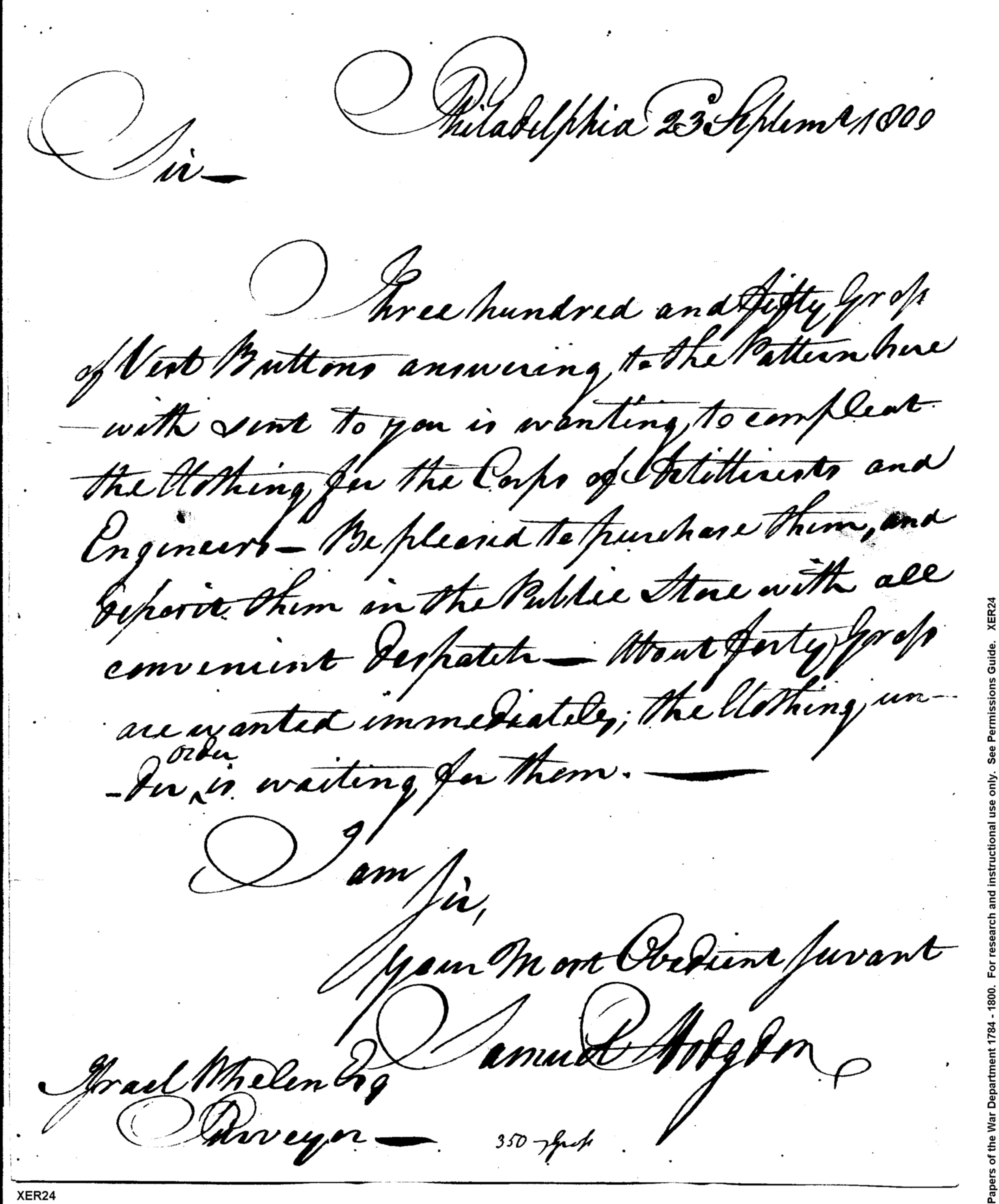 - Document: Order for Buttons for Corps of Artillerists and Engineers