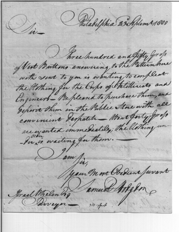- In source: Collection: Correspondence, Reports, Returns, Bills, Accounts Current' Statements, Receipts, Vouchers and Contracts of Philadelphia Supply Agencies (Coxe and Irvine Papers), 1794-1842. (RG92)
