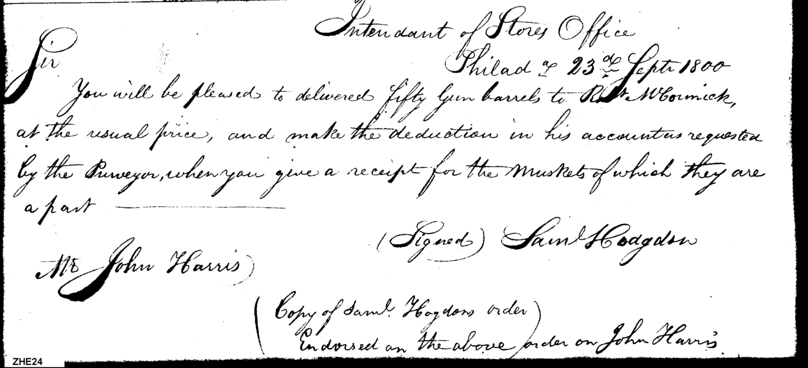 - Document: Delivery of Gun Barrels to Robert McCormick