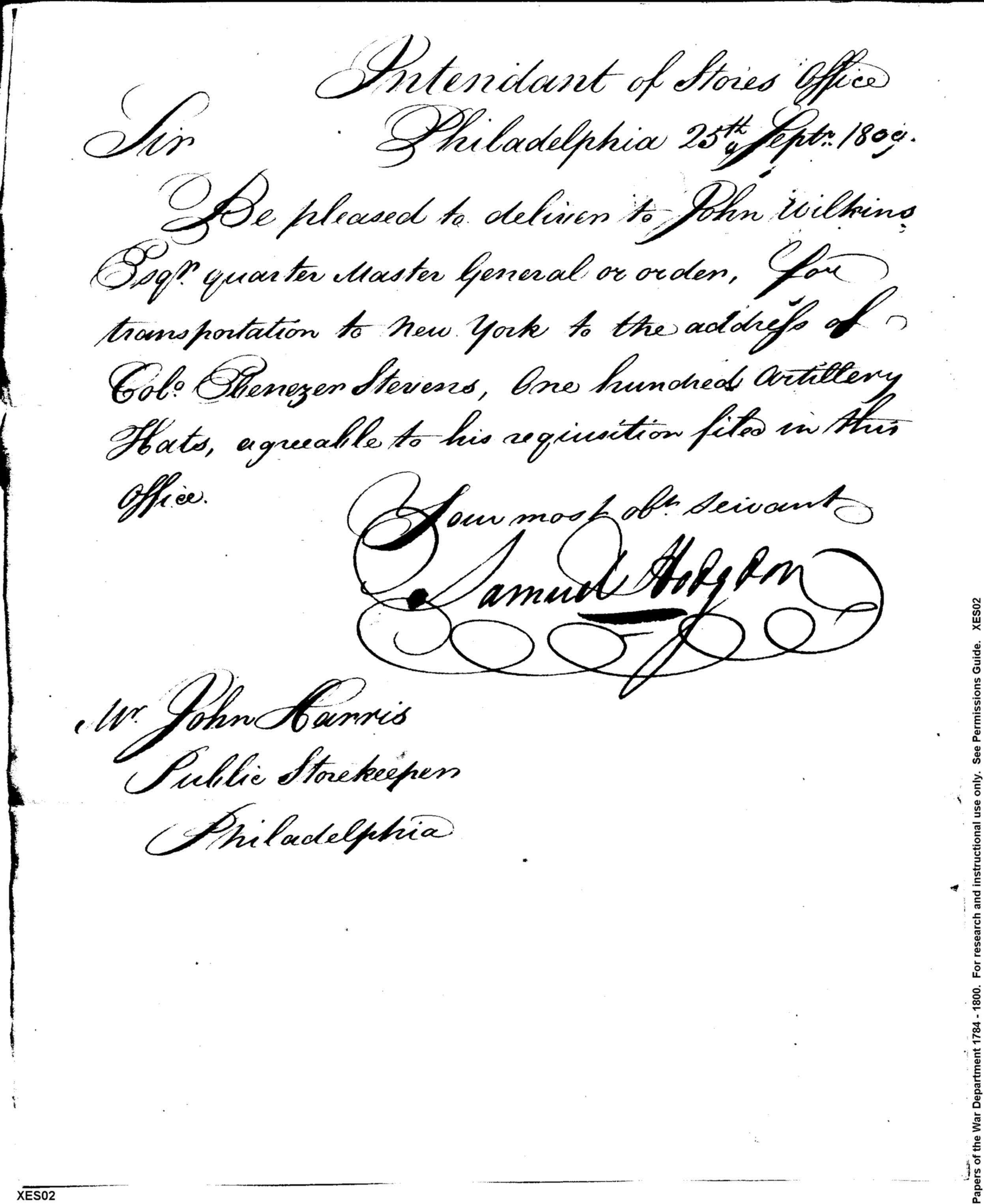 - In source: Collection: Correspondence, Reports, Returns, Bills, Accounts Current' Statements, Receipts, Vouchers and Contracts of Philadelphia Supply Agencies (Coxe and Irvine Papers), 1794-1842. (RG92)