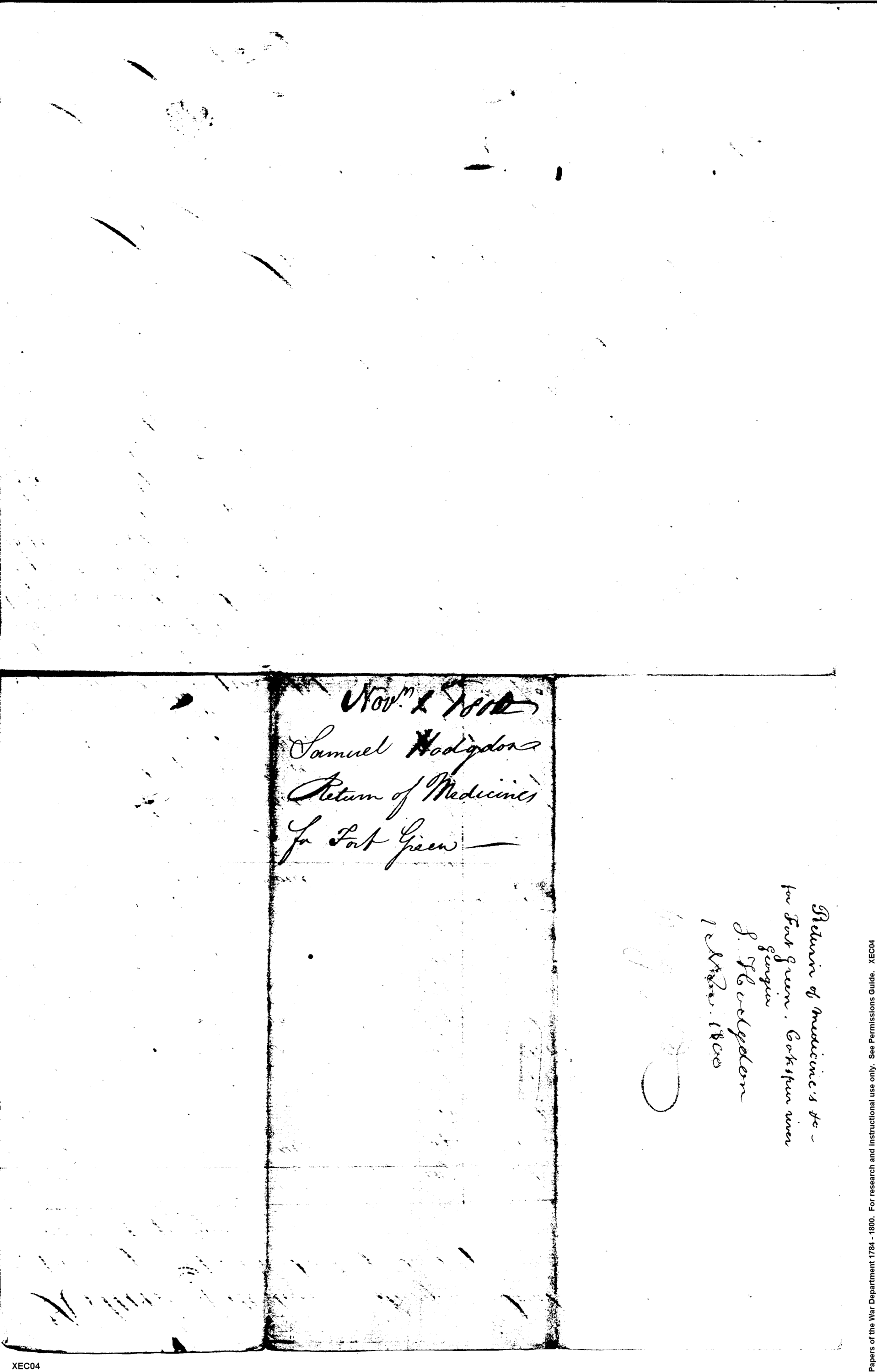 - Document: Return of Medicine and Surgical Instruments, calculated for one year, for the Post of Fort Green, Cockspur River, Savanah, State of Georgia.
