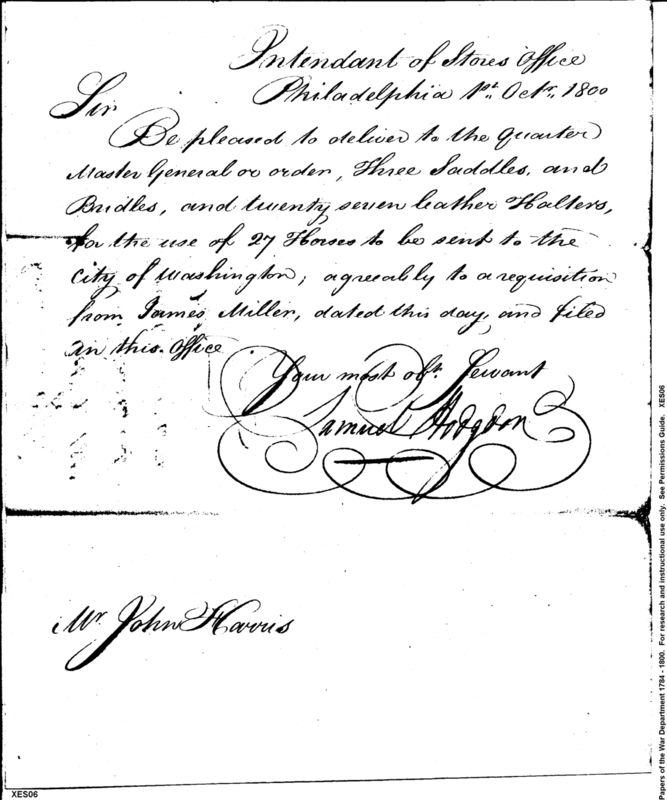 - In source: Collection: Correspondence, Reports, Returns, Bills, Accounts Current' Statements, Receipts, Vouchers and Contracts of Philadelphia Supply Agencies (Coxe and Irvine Papers), 1794-1842. (RG92)