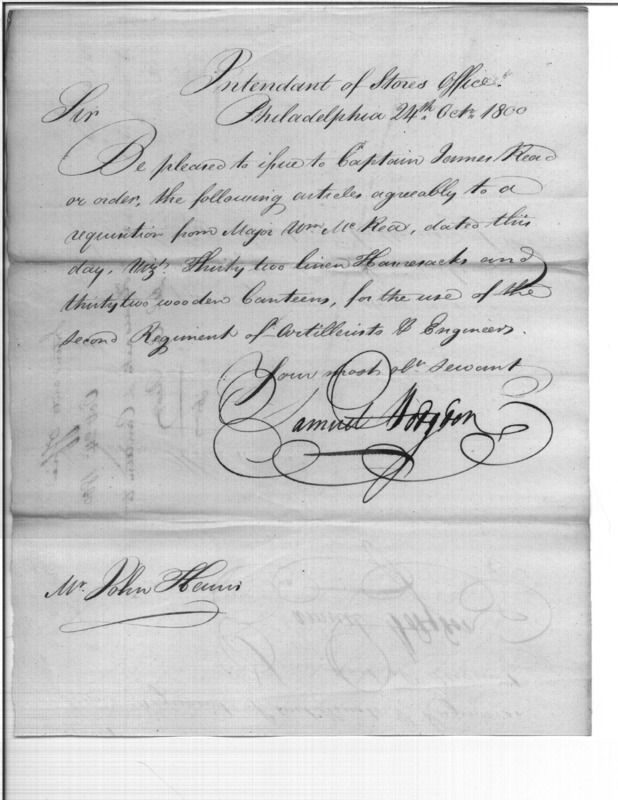 - In source: Collection: Correspondence, Reports, Returns, Bills, Accounts Current' Statements, Receipts, Vouchers and Contracts of Philadelphia Supply Agencies (Coxe and Irvine Papers), 1794-1842. (RG92)