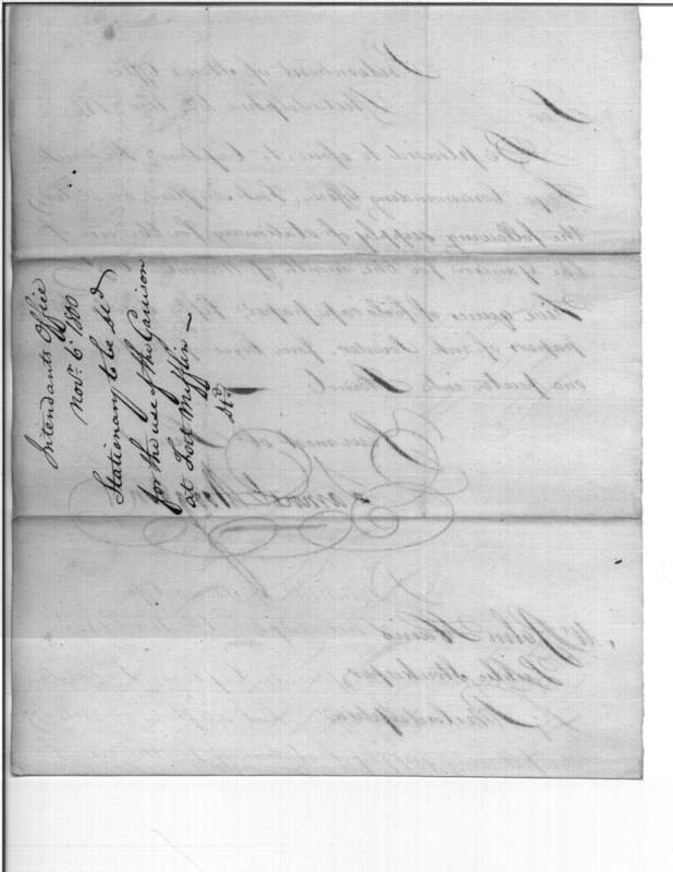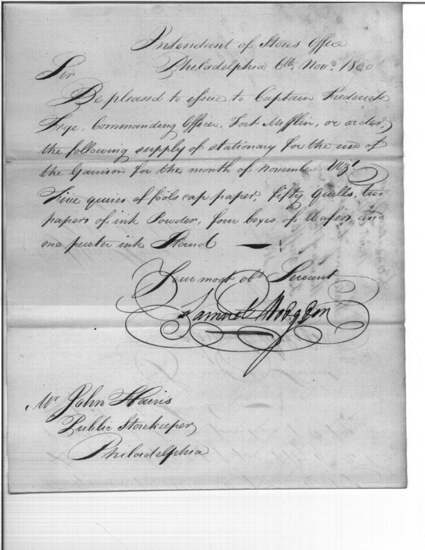 - Document: Issue of Stationery for Garrison at Fort Mifflin