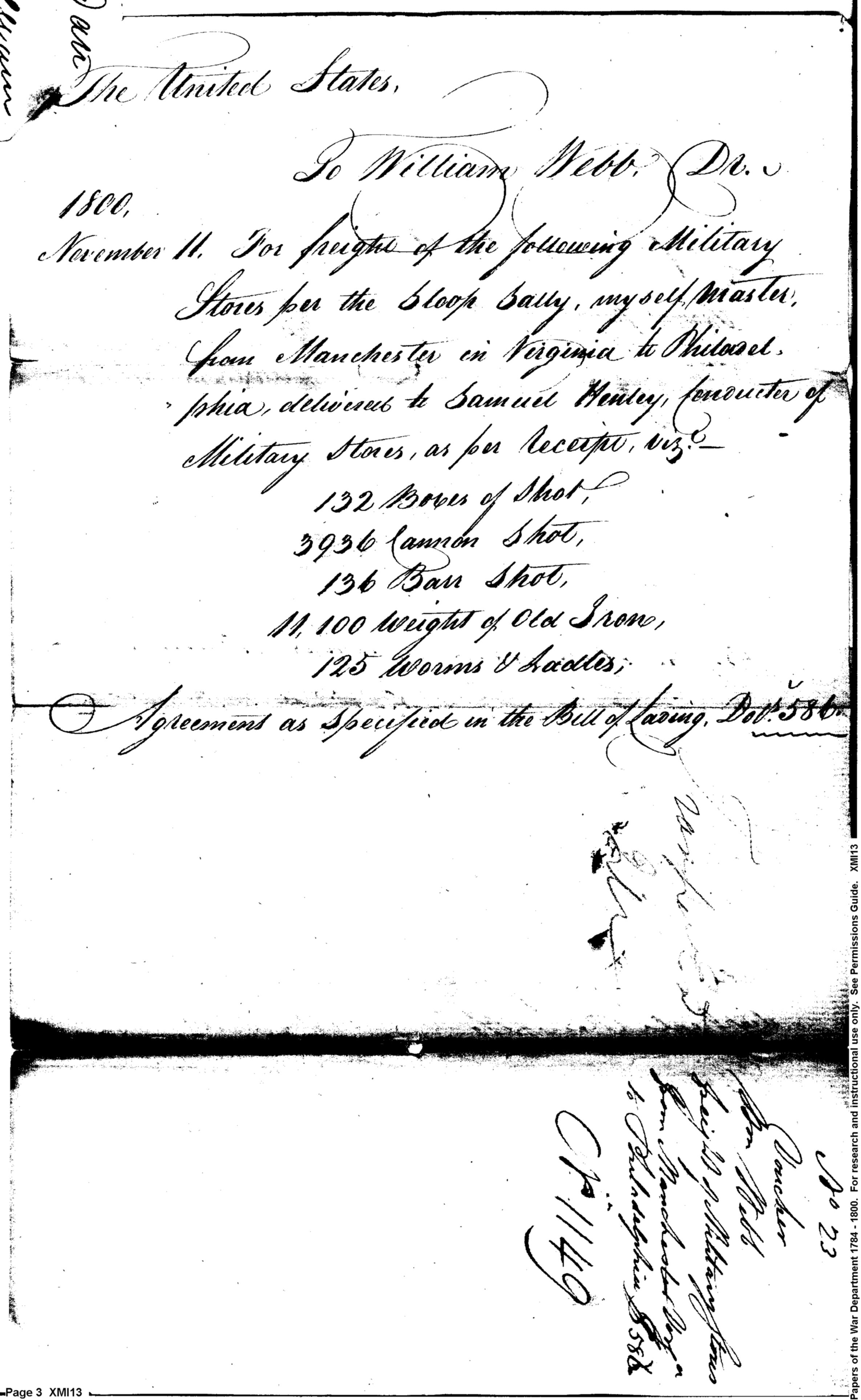 - Document: Bill of Lading for Military Stores Shipped from Richmond to Philadelphia