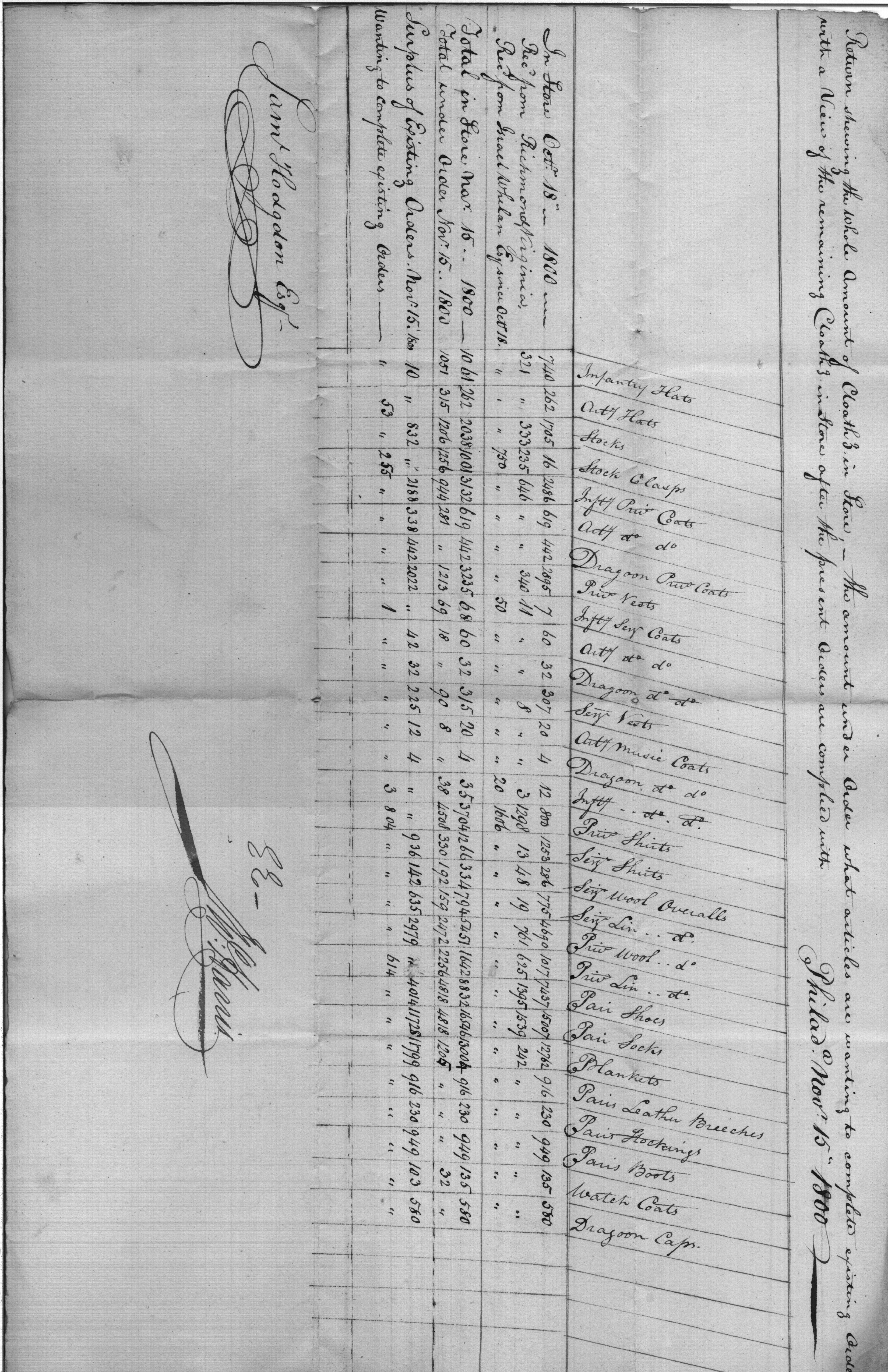 - In source: Collection: Correspondence, Reports, Returns, Bills, Accounts Current' Statements, Receipts, Vouchers and Contracts of Philadelphia Supply Agencies (Coxe and Irvine Papers), 1794-1842. (RG92)