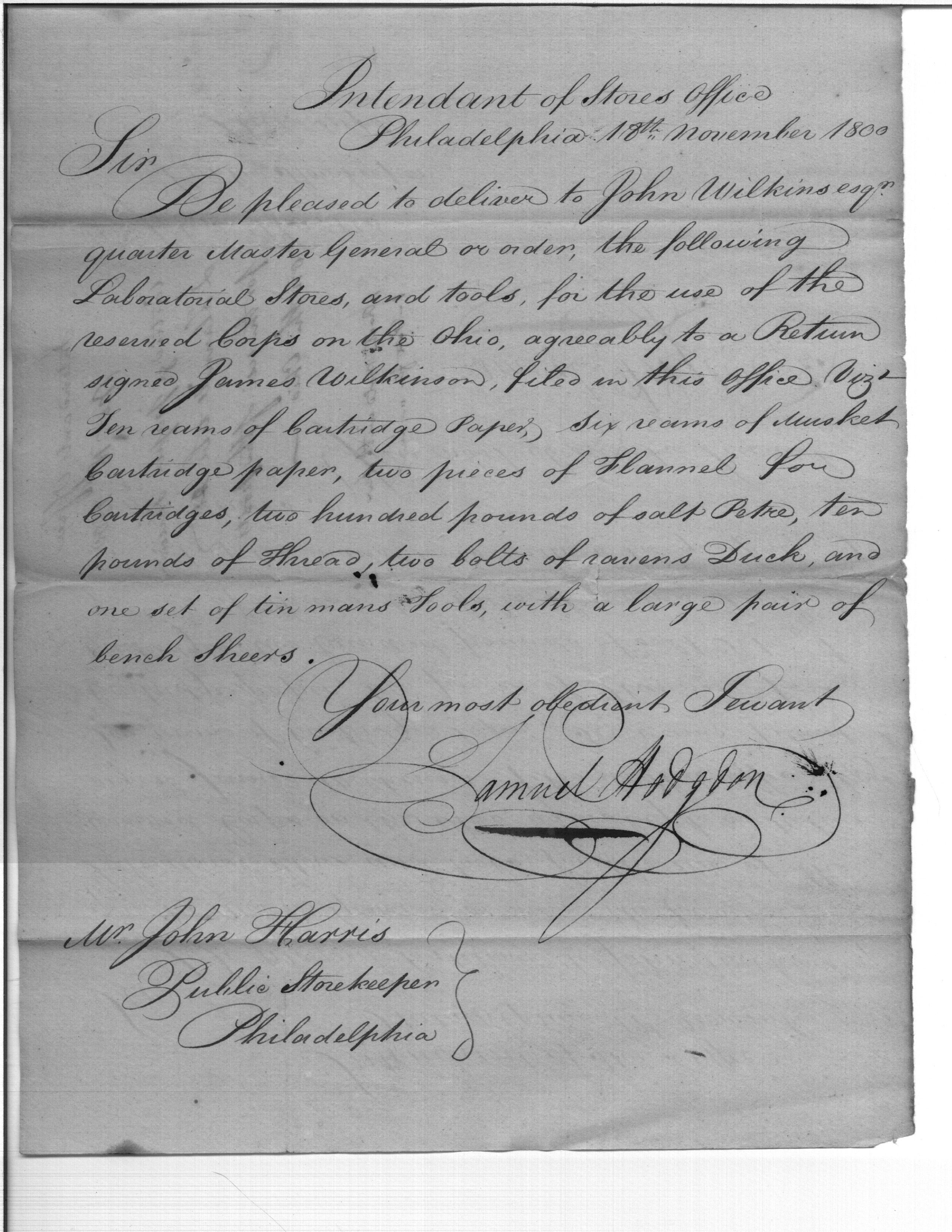 - In source: Collection: Correspondence, Reports, Returns, Bills, Accounts Current' Statements, Receipts, Vouchers and Contracts of Philadelphia Supply Agencies (Coxe and Irvine Papers), 1794-1842. (RG92)