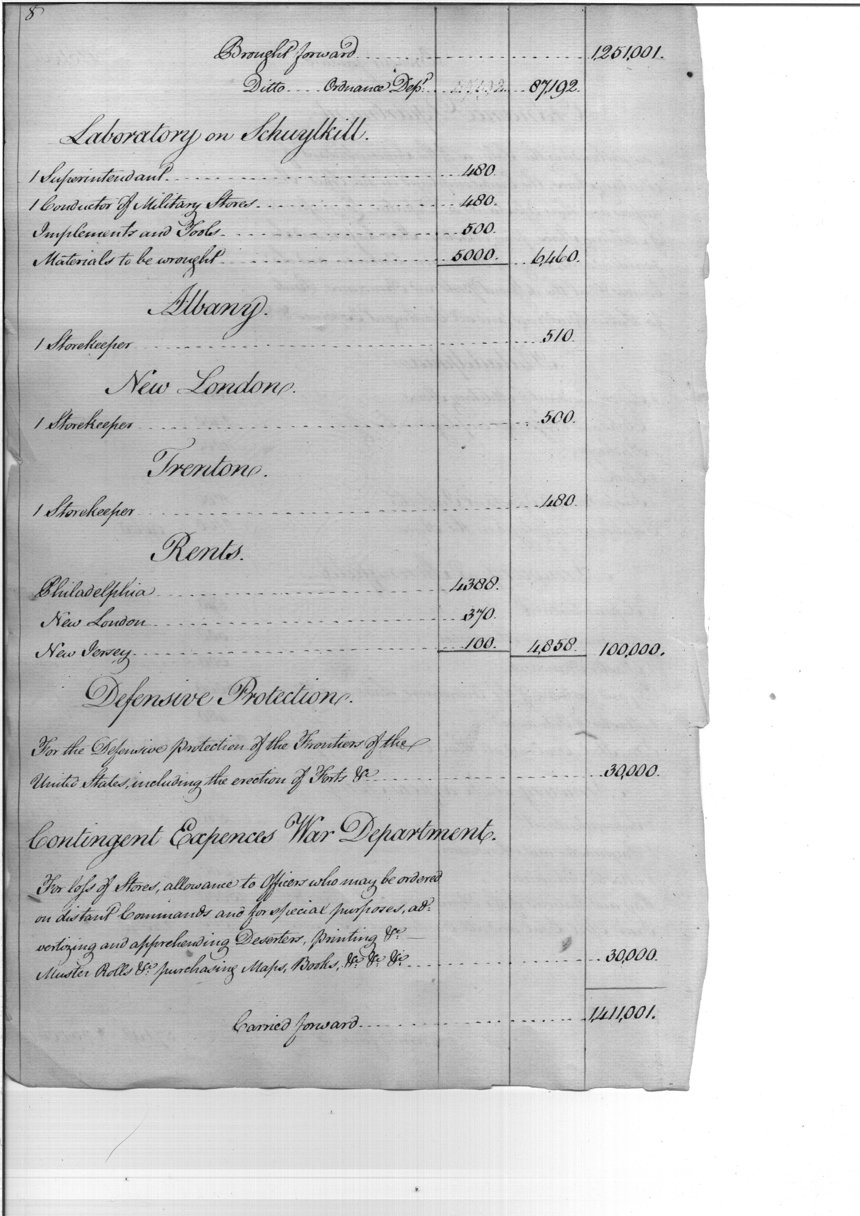 - Document: Estimate of Expenses for the US Army, 1801