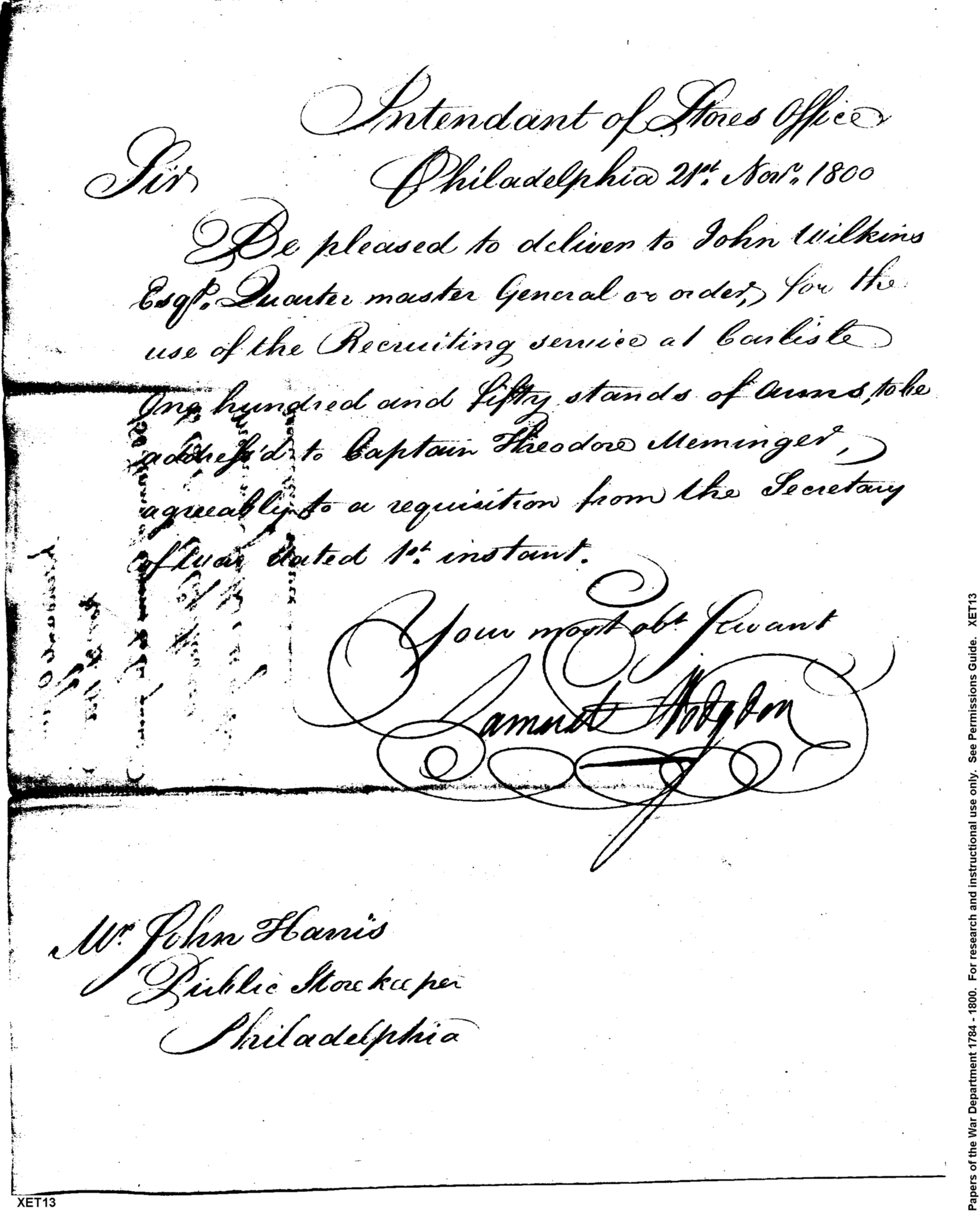 - In source: Collection: Correspondence, Reports, Returns, Bills, Accounts Current' Statements, Receipts, Vouchers and Contracts of Philadelphia Supply Agencies (Coxe and Irvine Papers), 1794-1842. (RG92)