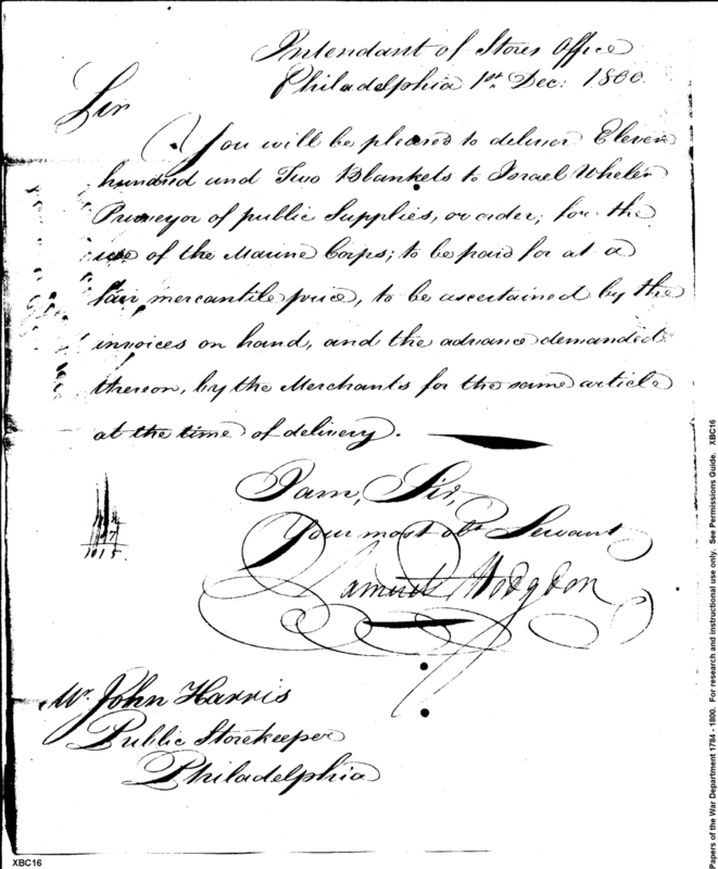 - Document: Request for Blankets for Use of the Marine Corps