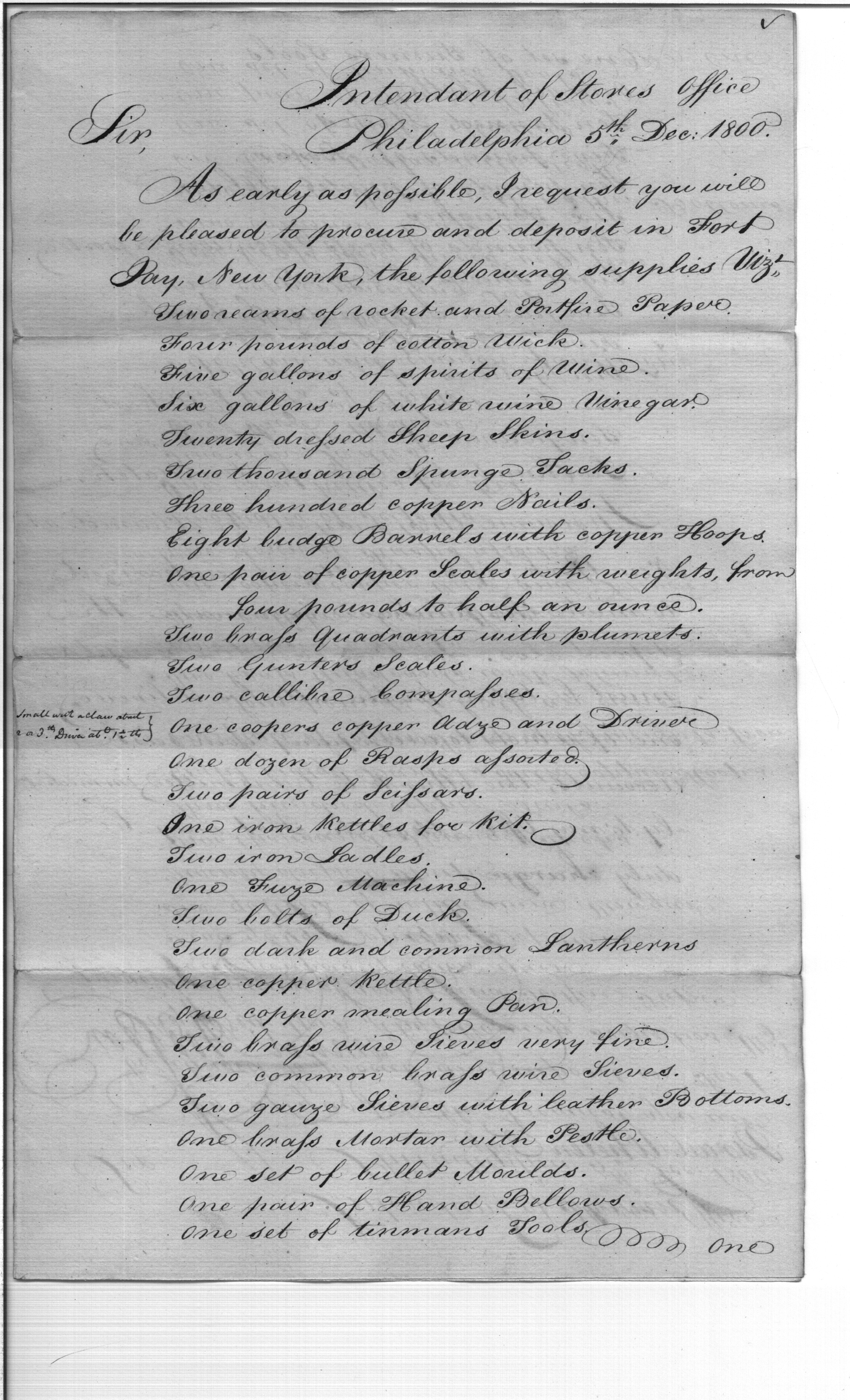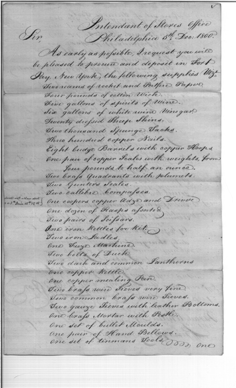 - In source: Collection: Correspondence, Reports, Returns, Bills, Accounts Current' Statements, Receipts, Vouchers and Contracts of Philadelphia Supply Agencies (Coxe and Irvine Papers), 1794-1842. (RG92)