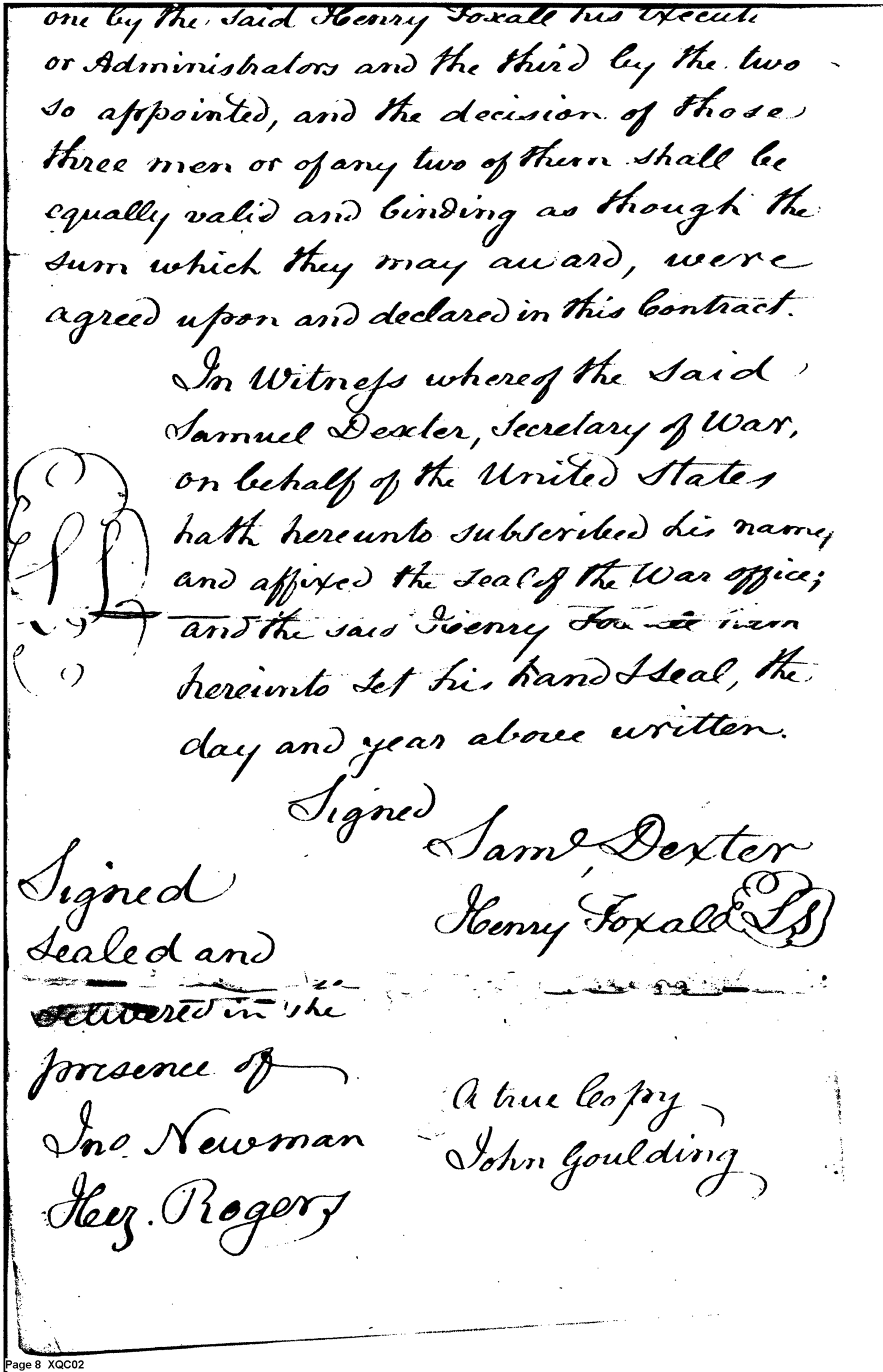 - Document: Contract for the Delivery of Cannon between Samuel Dexter and Henry Foxall