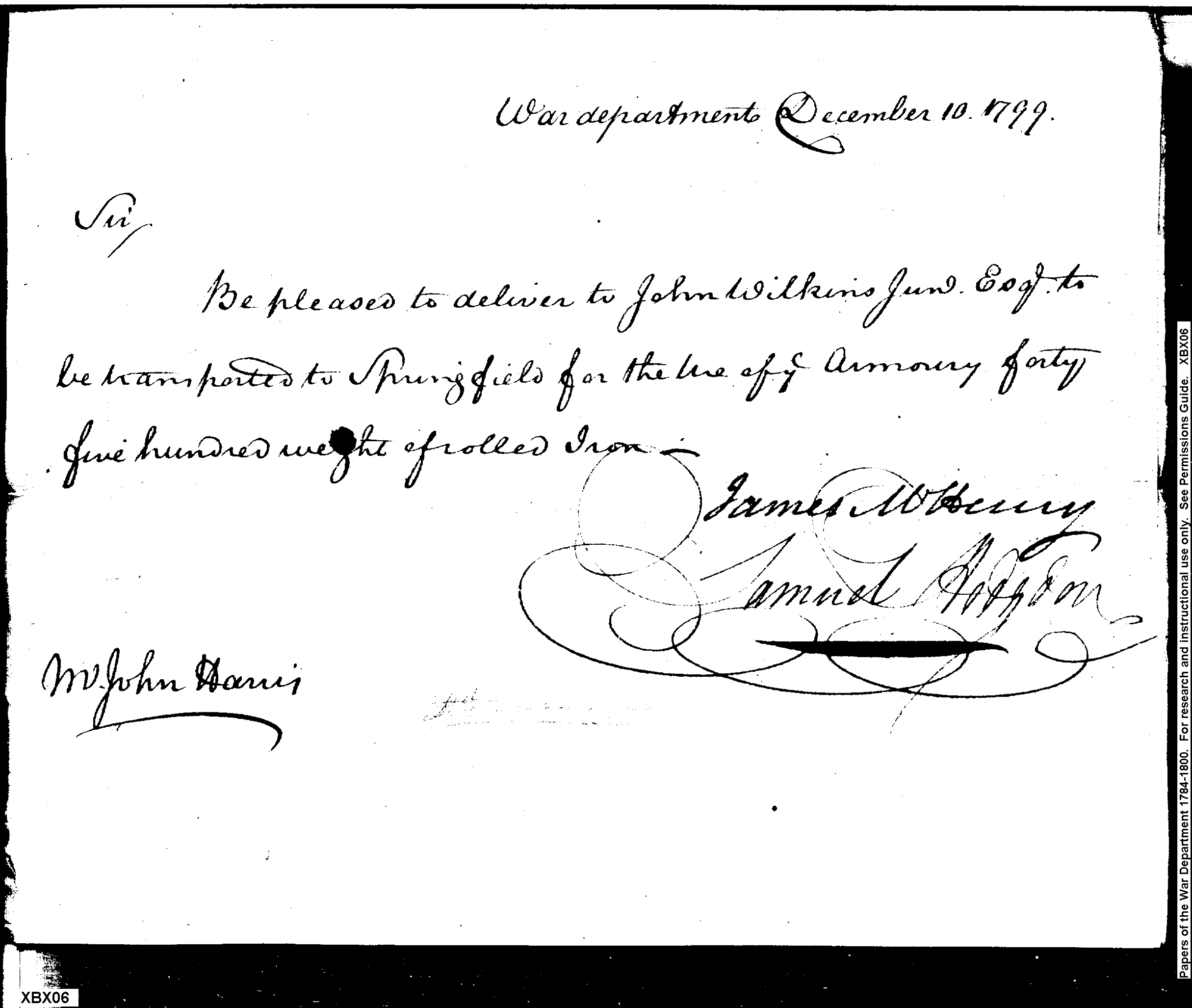 - Document: Request for Issue of Rolled Iron to Springfield Armory