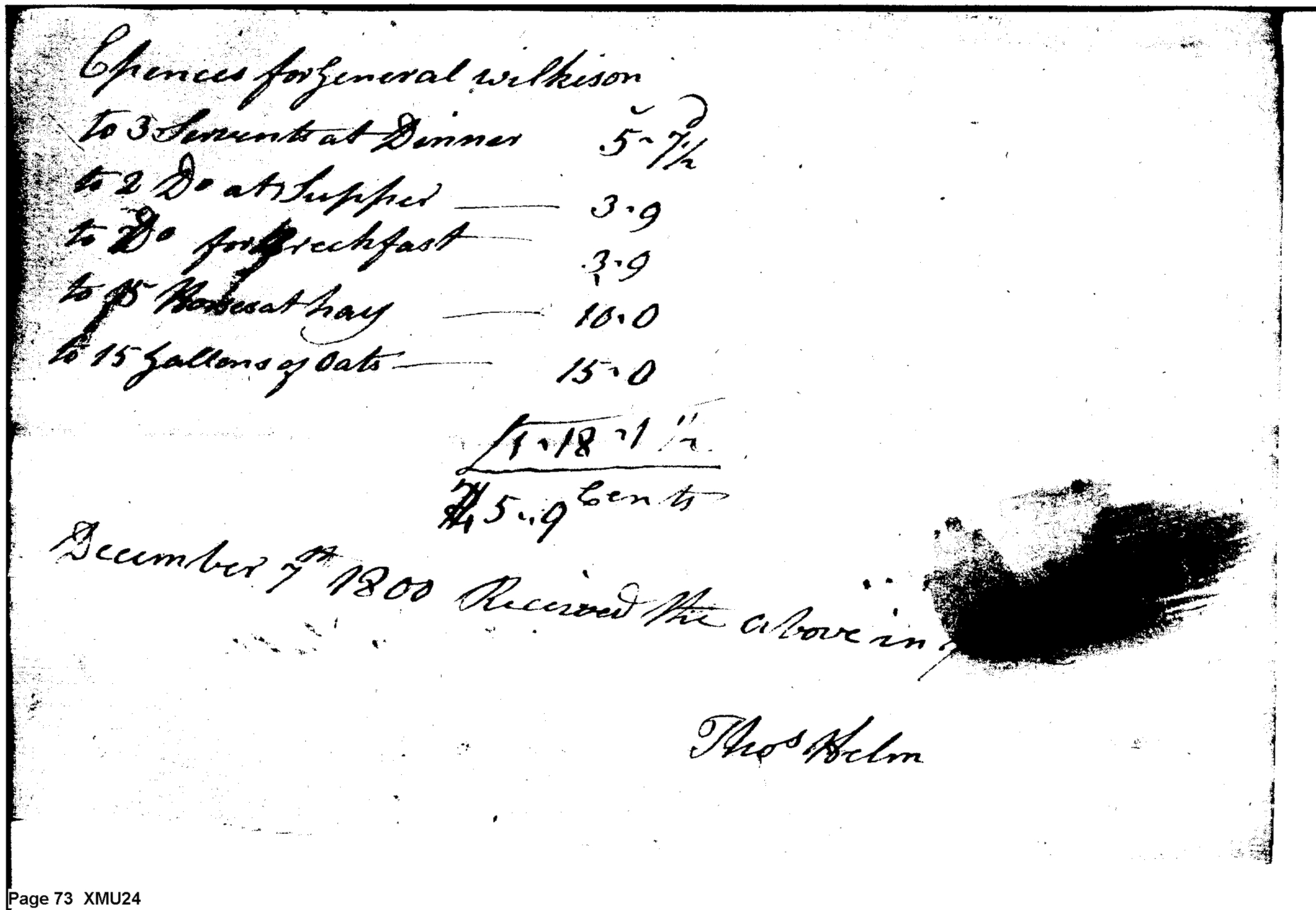 Document ViewerExpenses for General Wilkinson's Servants at Williamsport