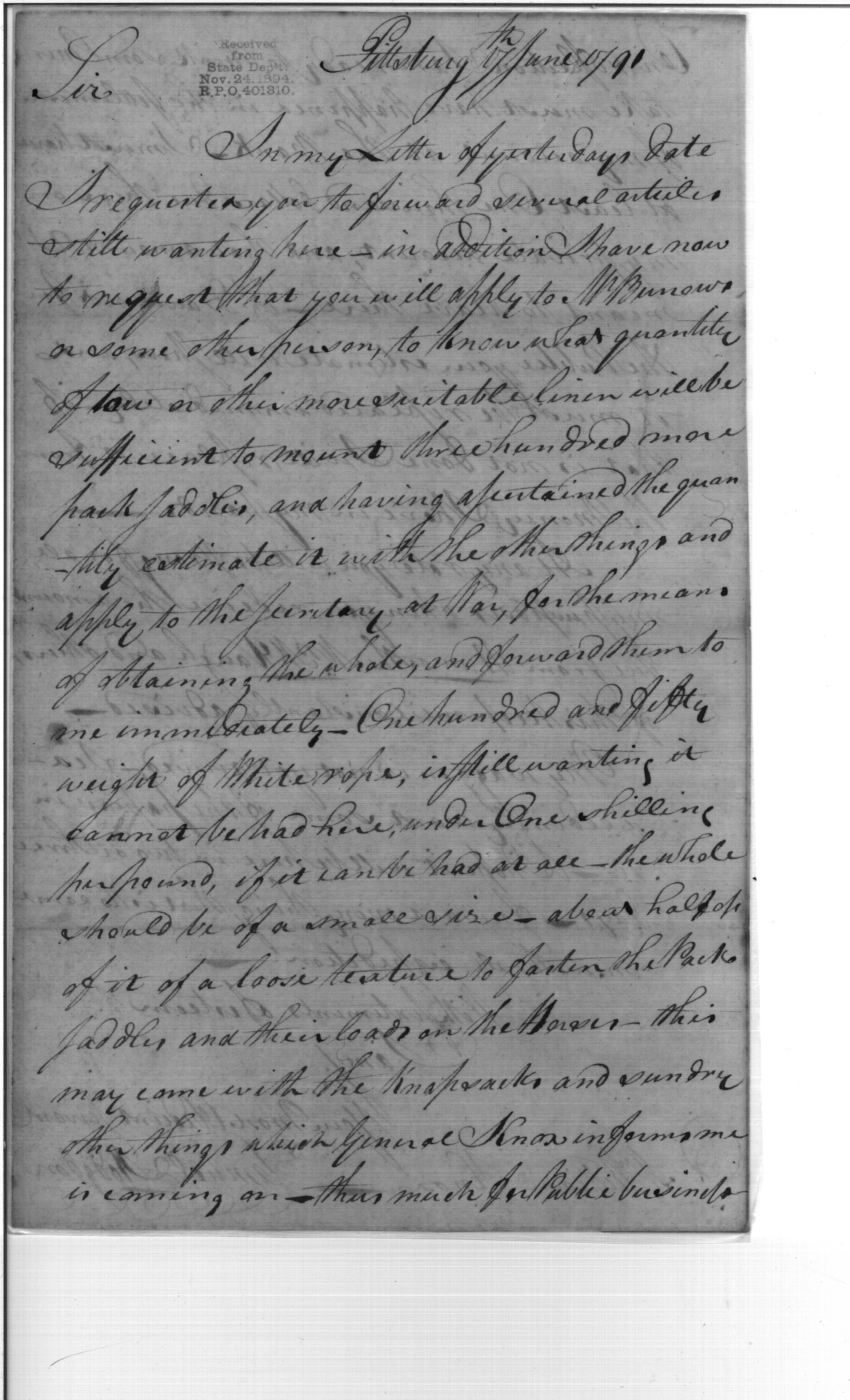 Post Revolutionary War Papers, 1784-1815. (RG94)