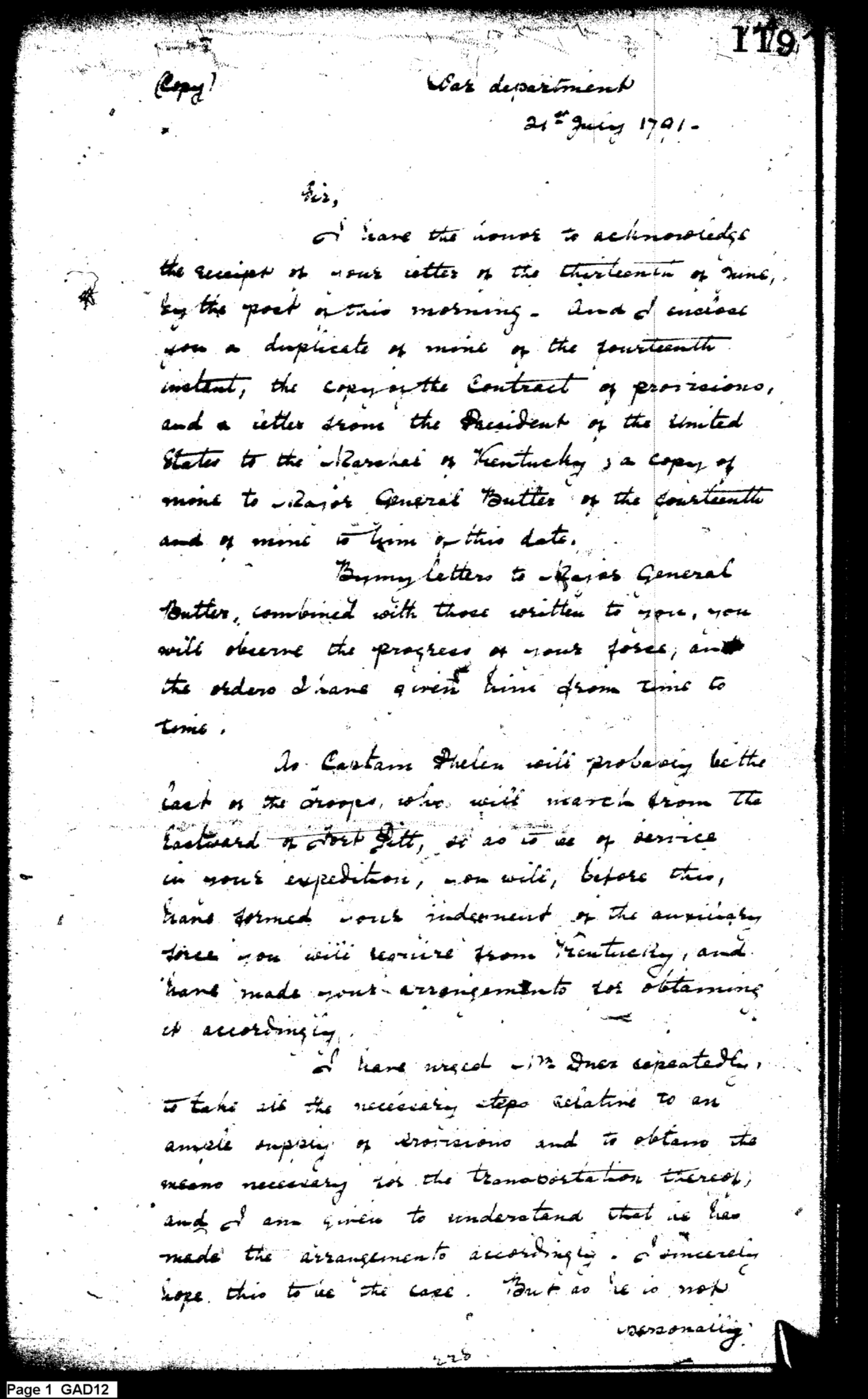- Document: Treaty with Indians, Status of Troops, Establishment of Posts on Frontier