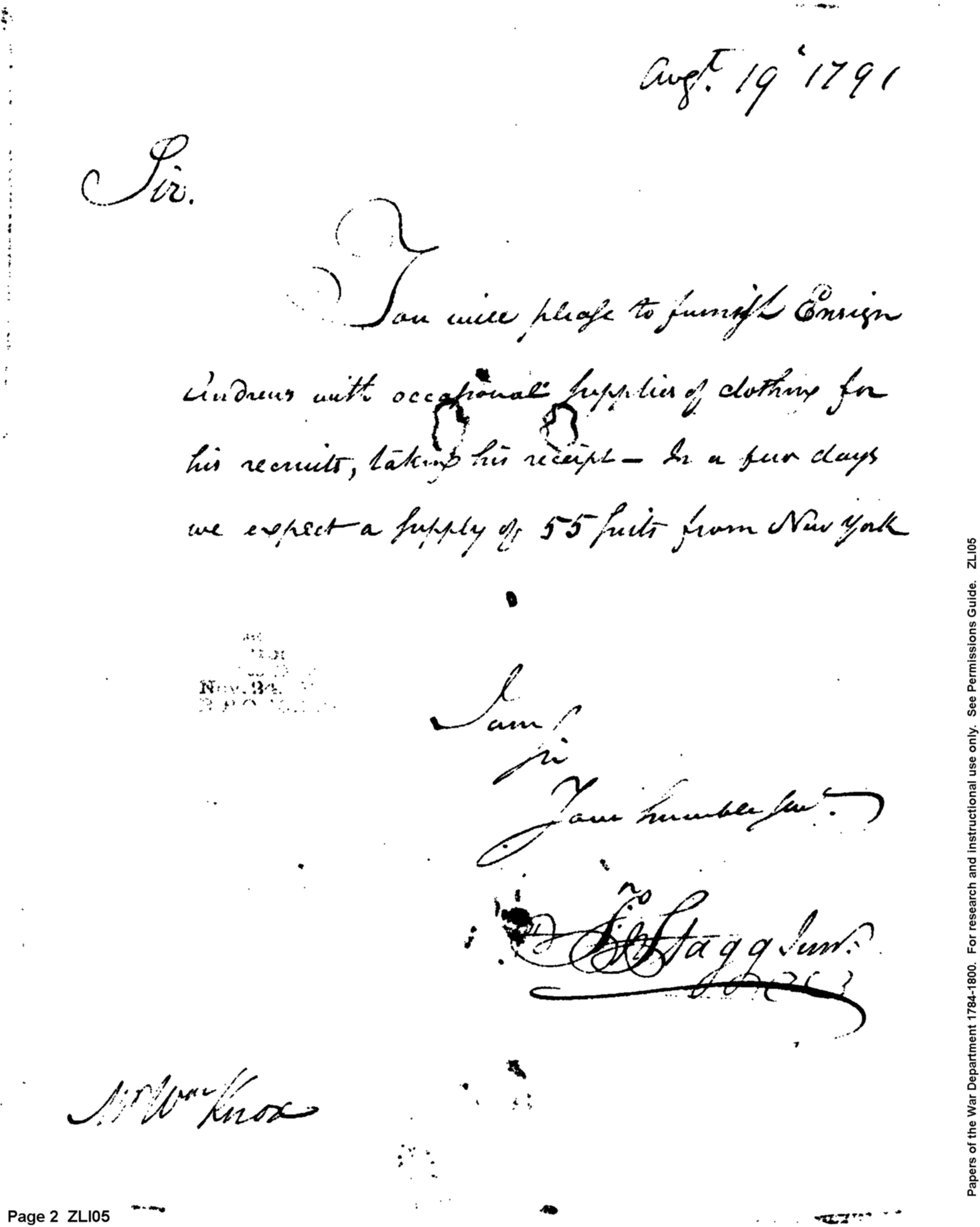 - In source: Collection: Post Revolutionary War Papers, 1784-1815. (RG94)