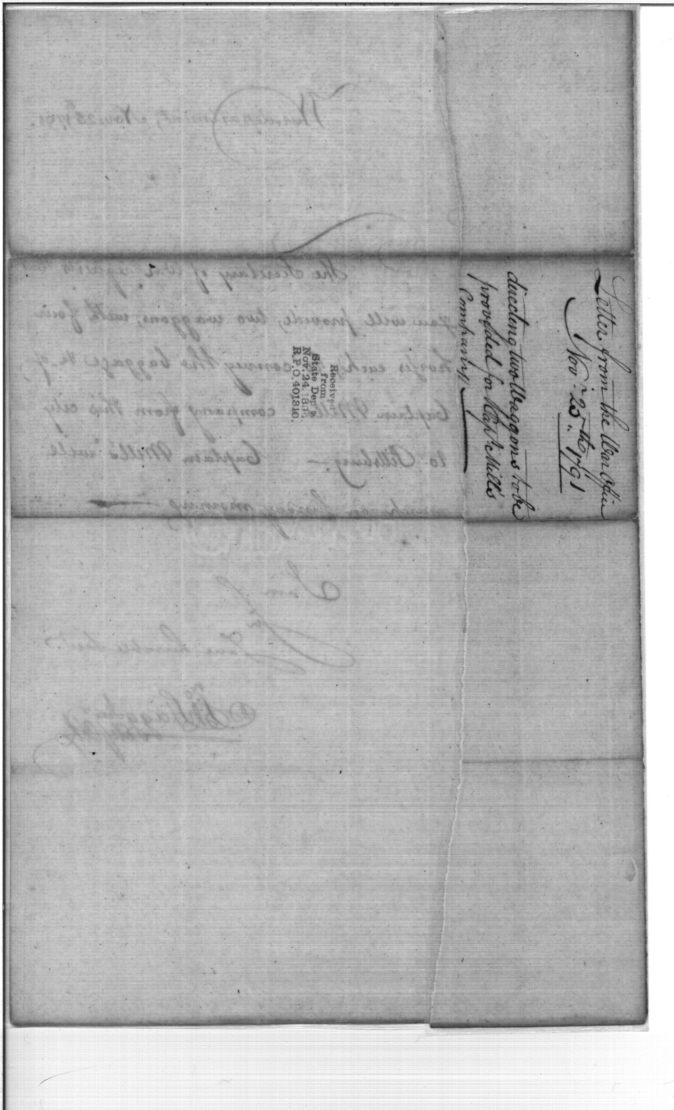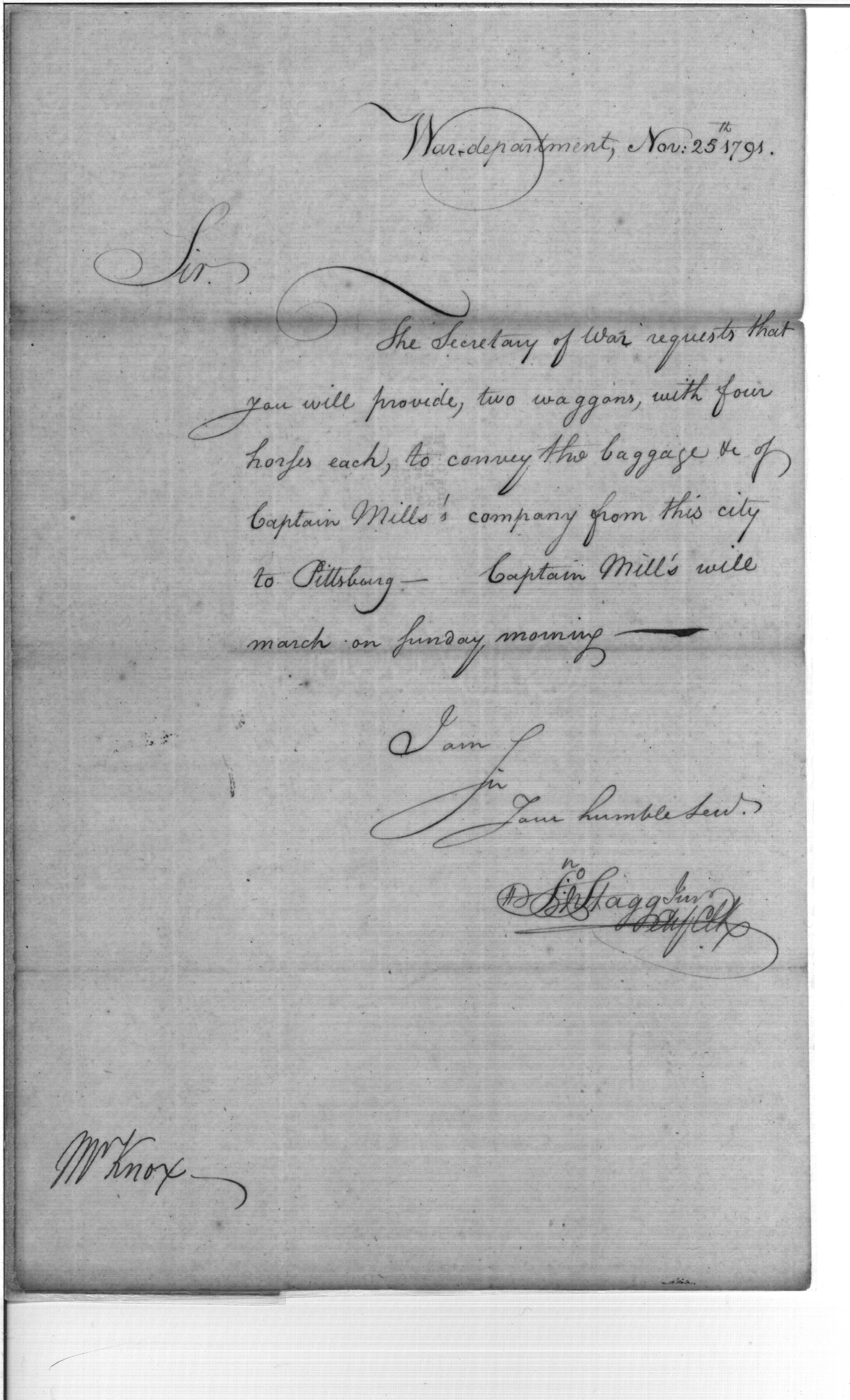- Document: Requests Two Wagons with Horses for Captain Mills