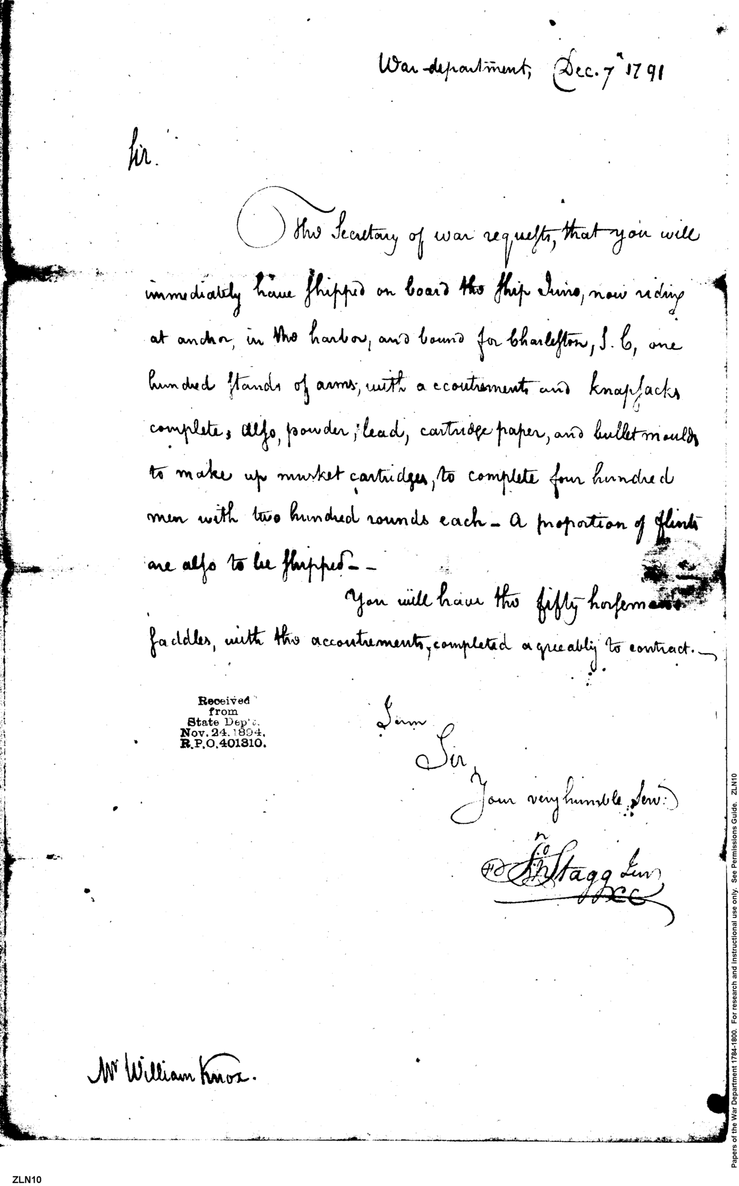 Post Revolutionary War Papers, 1784-1815. (RG94)