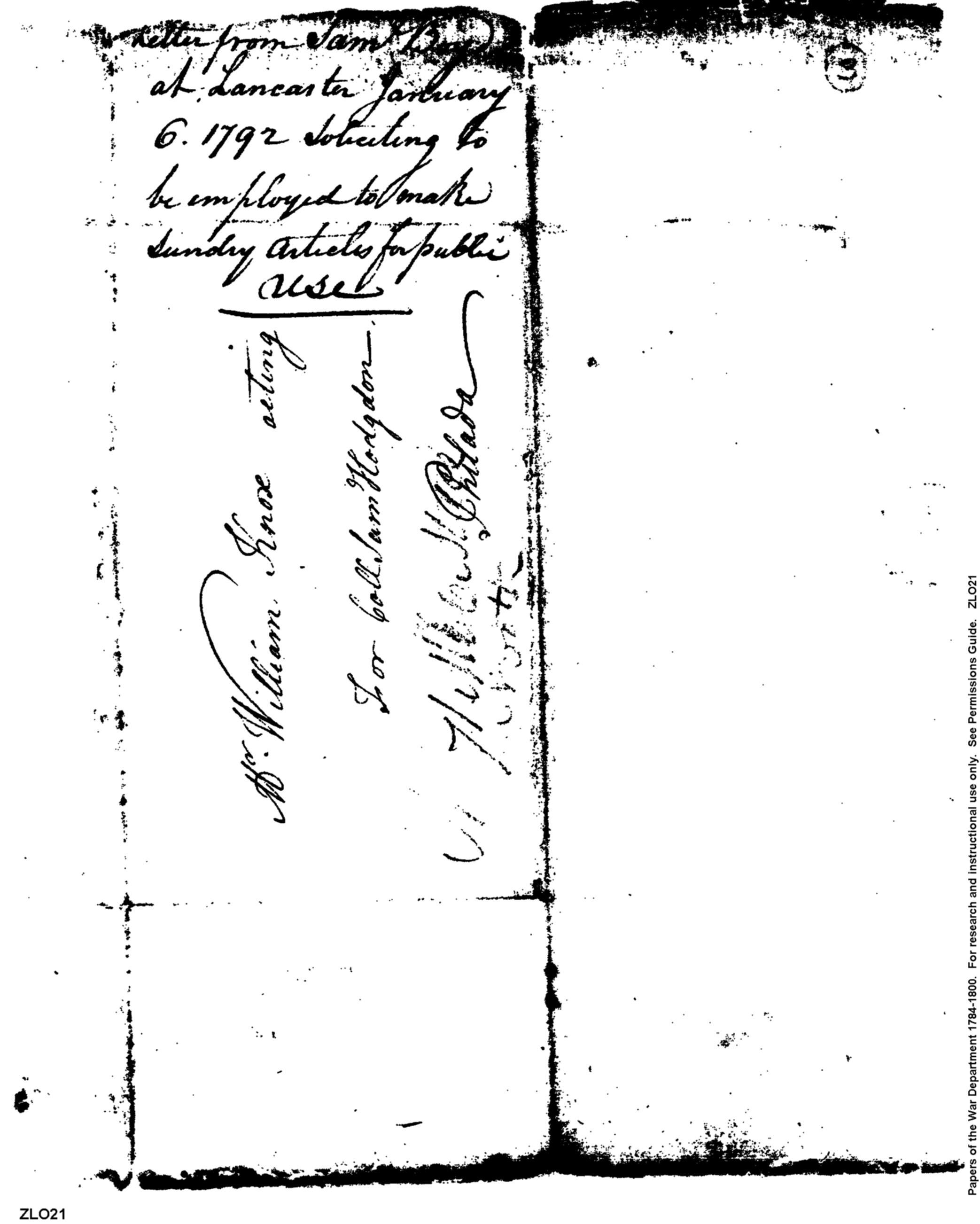 Document ViewerLetter from Sam Boyd at Lancaster Ohio soliciting to be employed to make sundry articles for public use in the wake of unfortunate St. Clair expedition