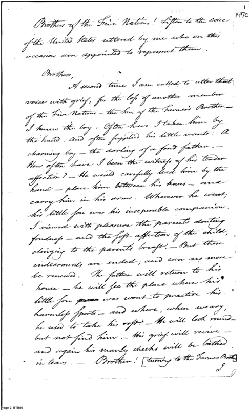 Document ViewerColonel Pickering address to the Senekas and their Chief mourning the death of Farmer's Brother's Son