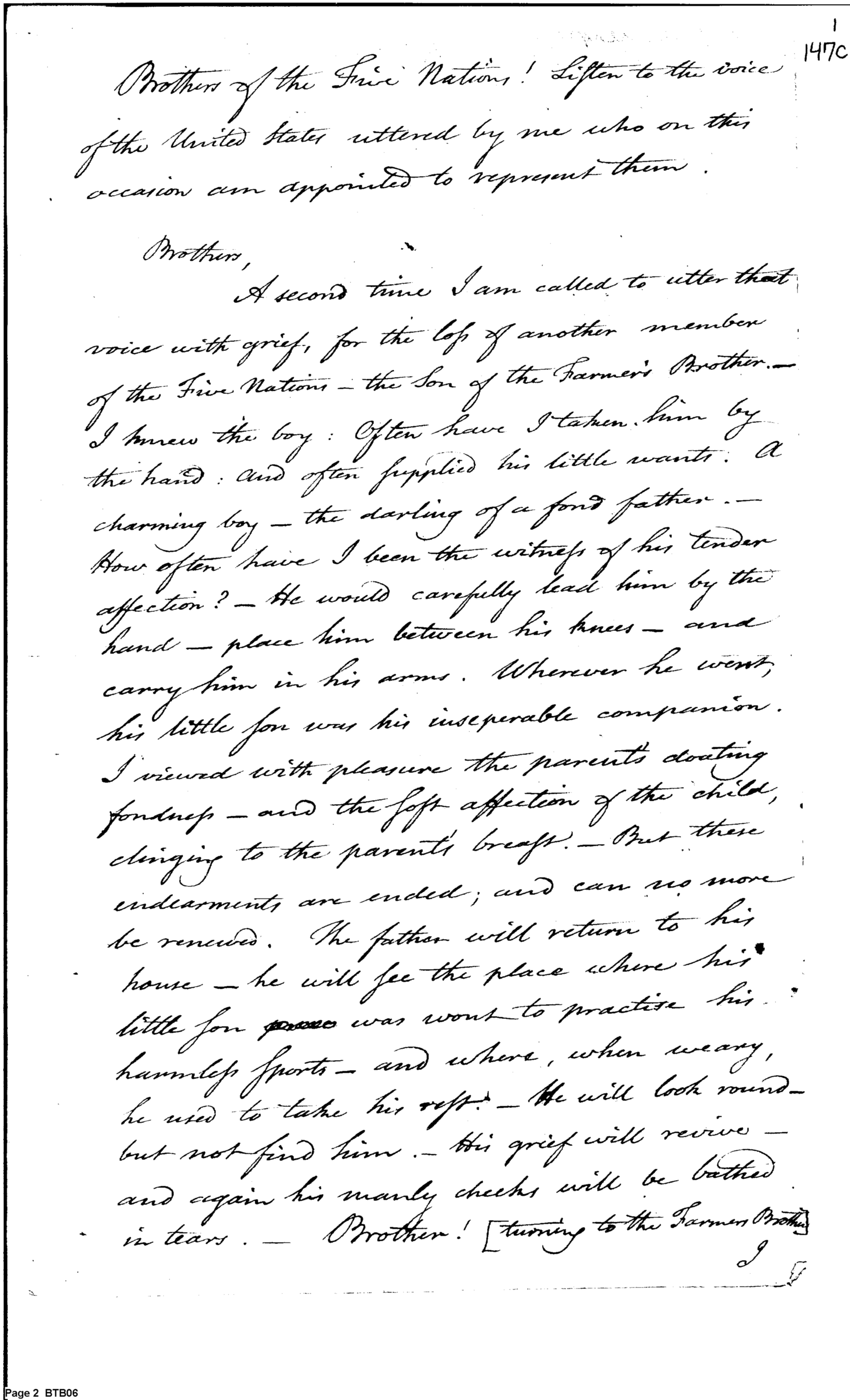 - Document: Colonel Pickering address to the Senekas and their Chief mourning the death of Farmer's Brother's Son