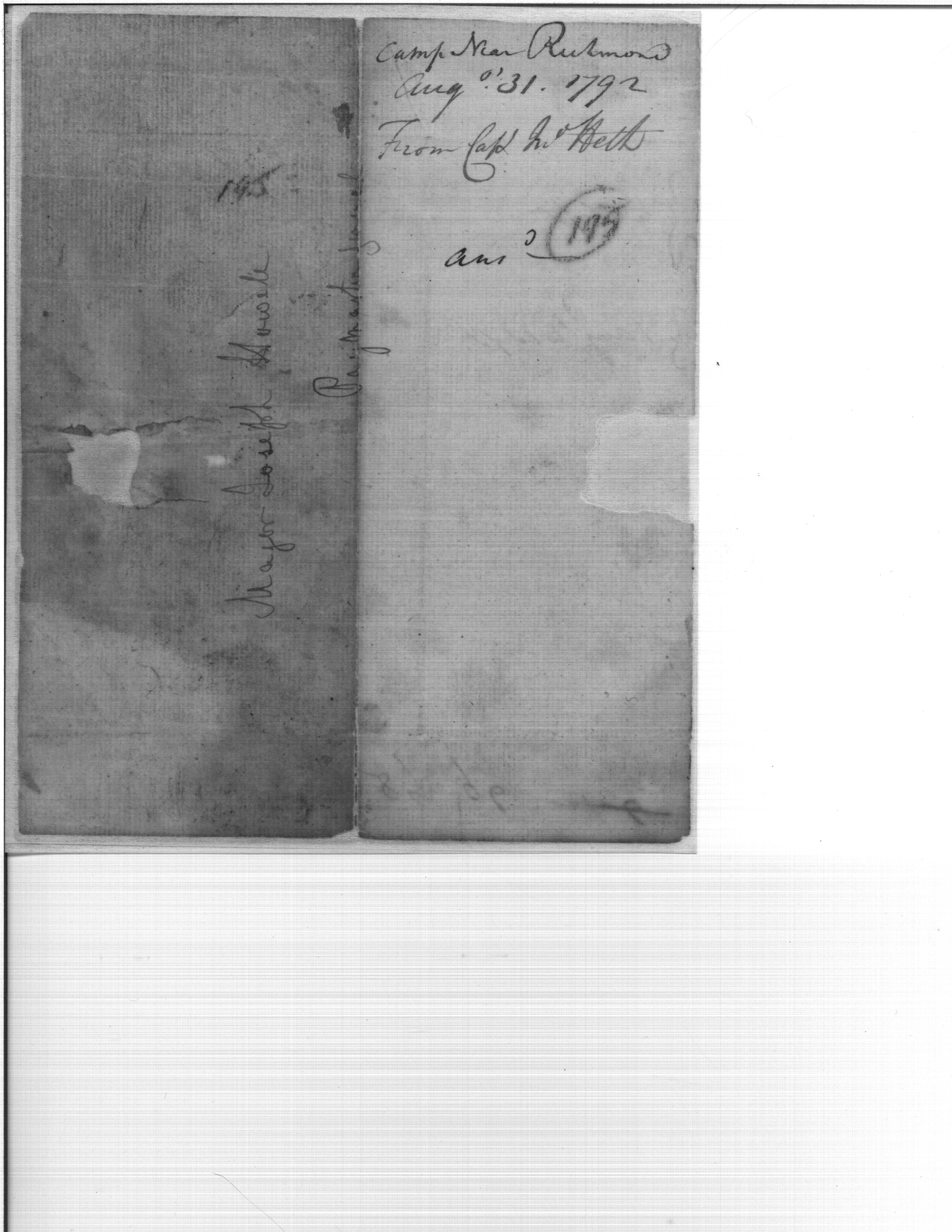 - Document: Letter ffrom John Heth on pay matters regarding supervisor, Lieutenant Tinsley, and Ensign Feris