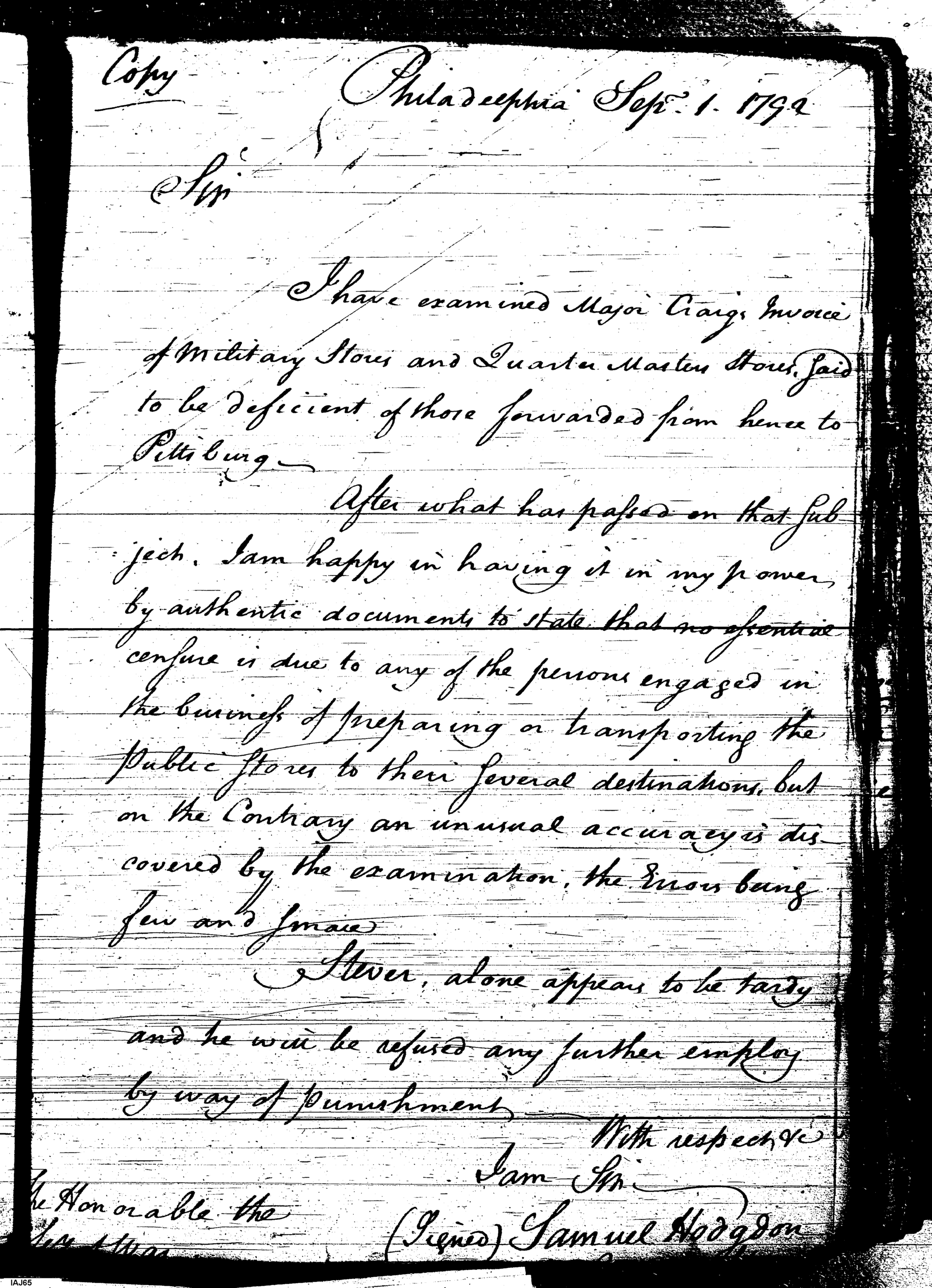 - Document: Regarding Censure for Lack of Preparations and Tardiness of Stever