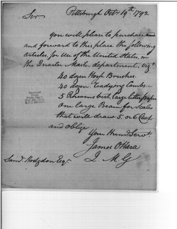 Post Revolutionary War Papers, 1784-1815. (RG94)