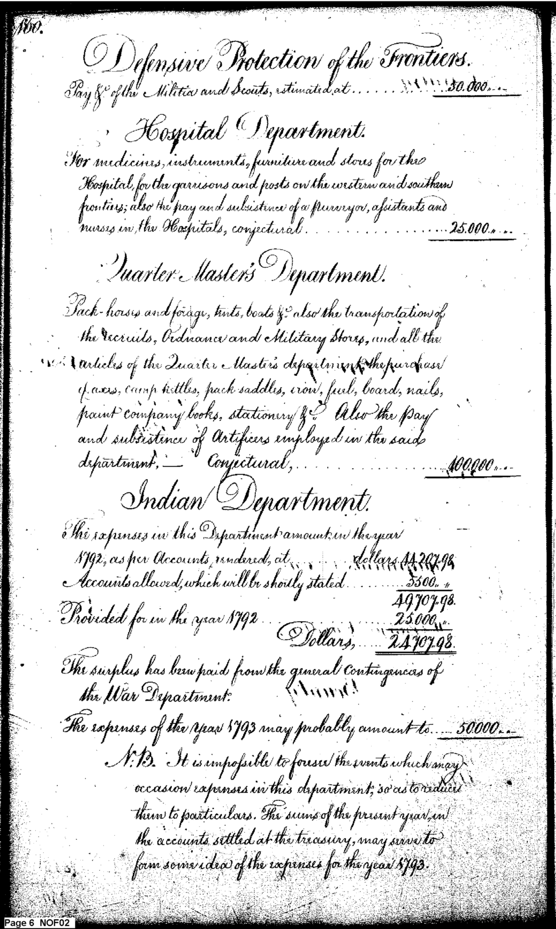- Document: Estimate of War Department expenses for 1793