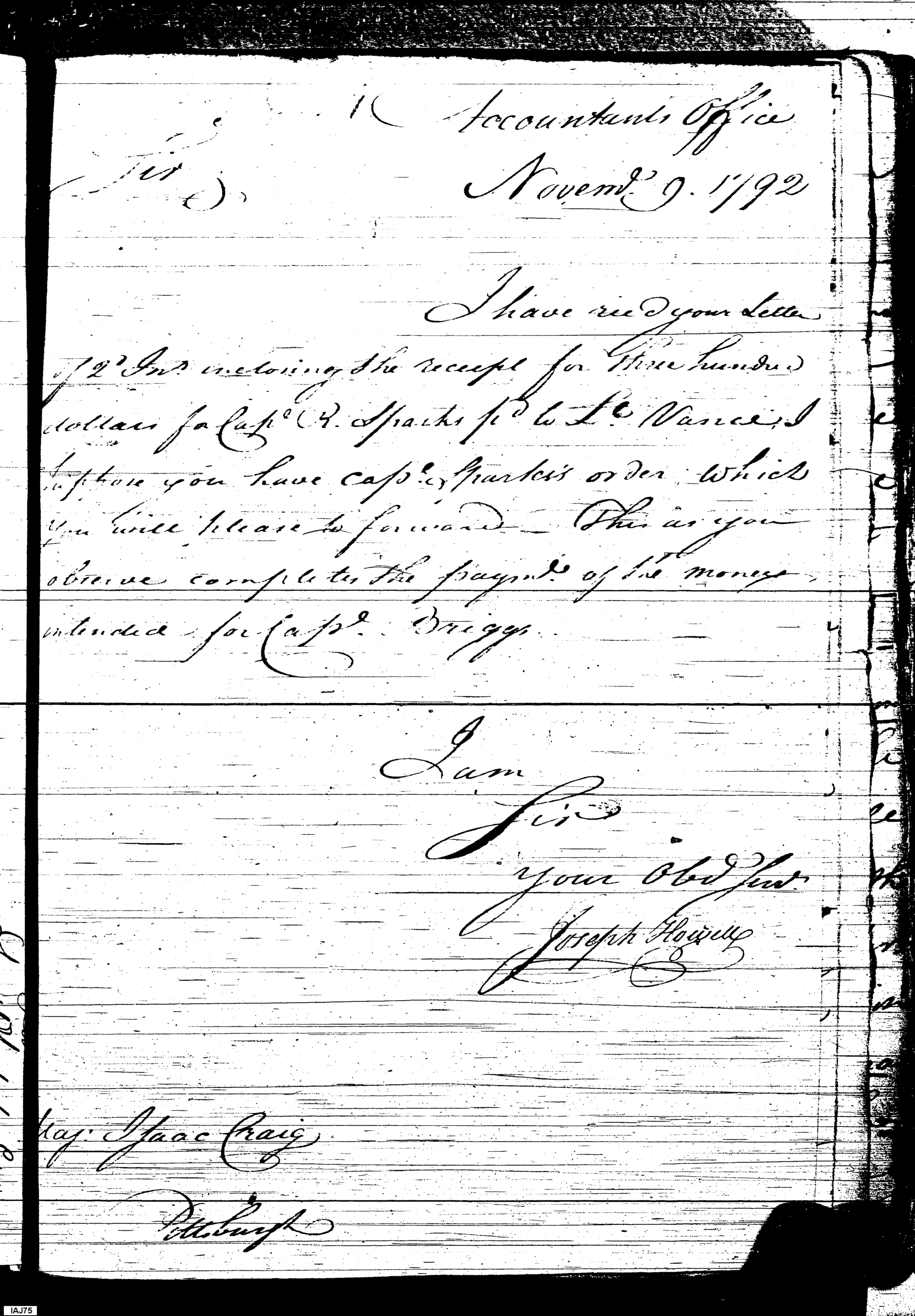 - Document: Receipt for Payments: Captain Sparks, Lieutenant Vance, Captain Briggs