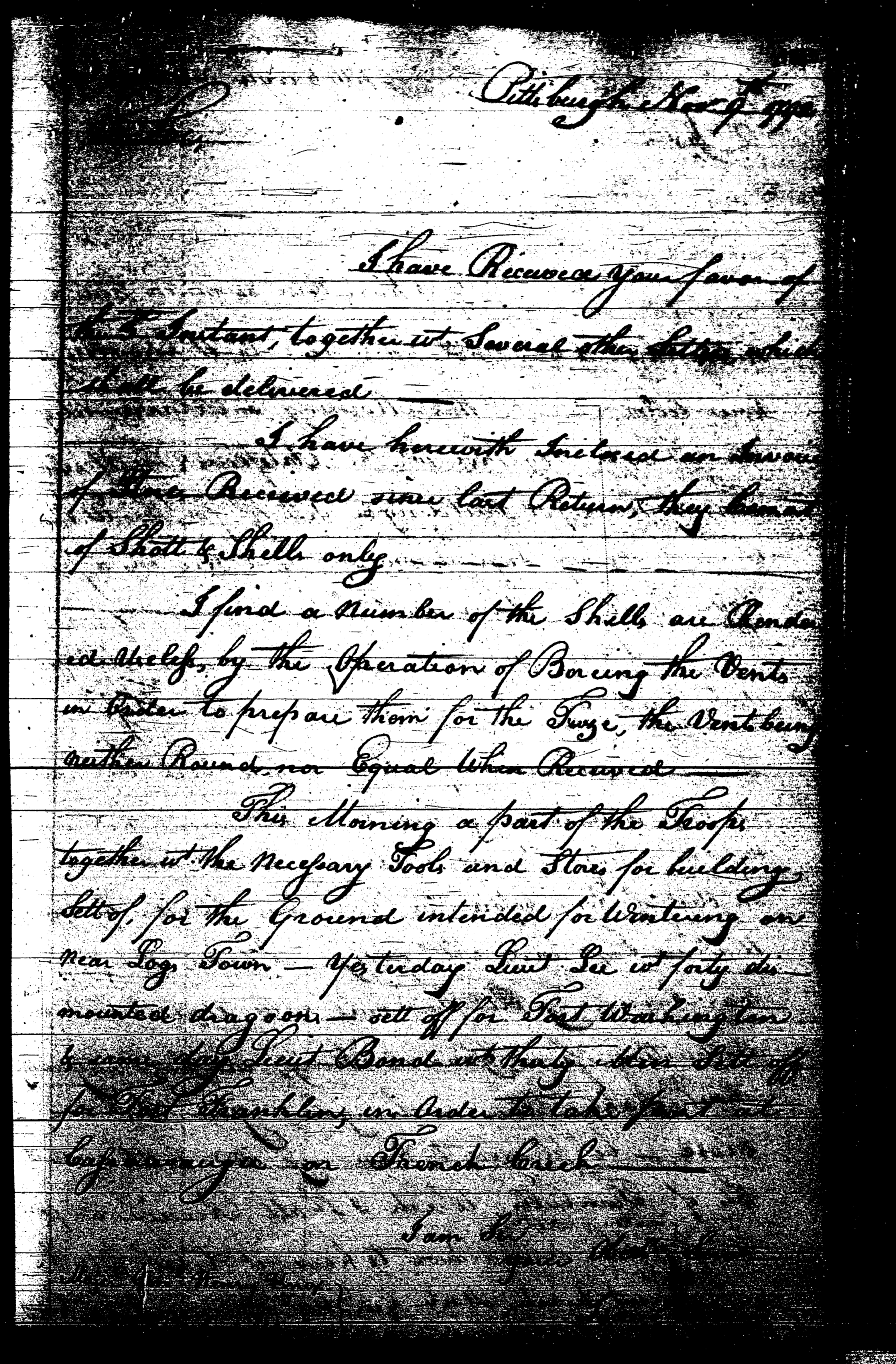 - Document: Useless Shot and Shells; Construction for Wintering; Fort Washington