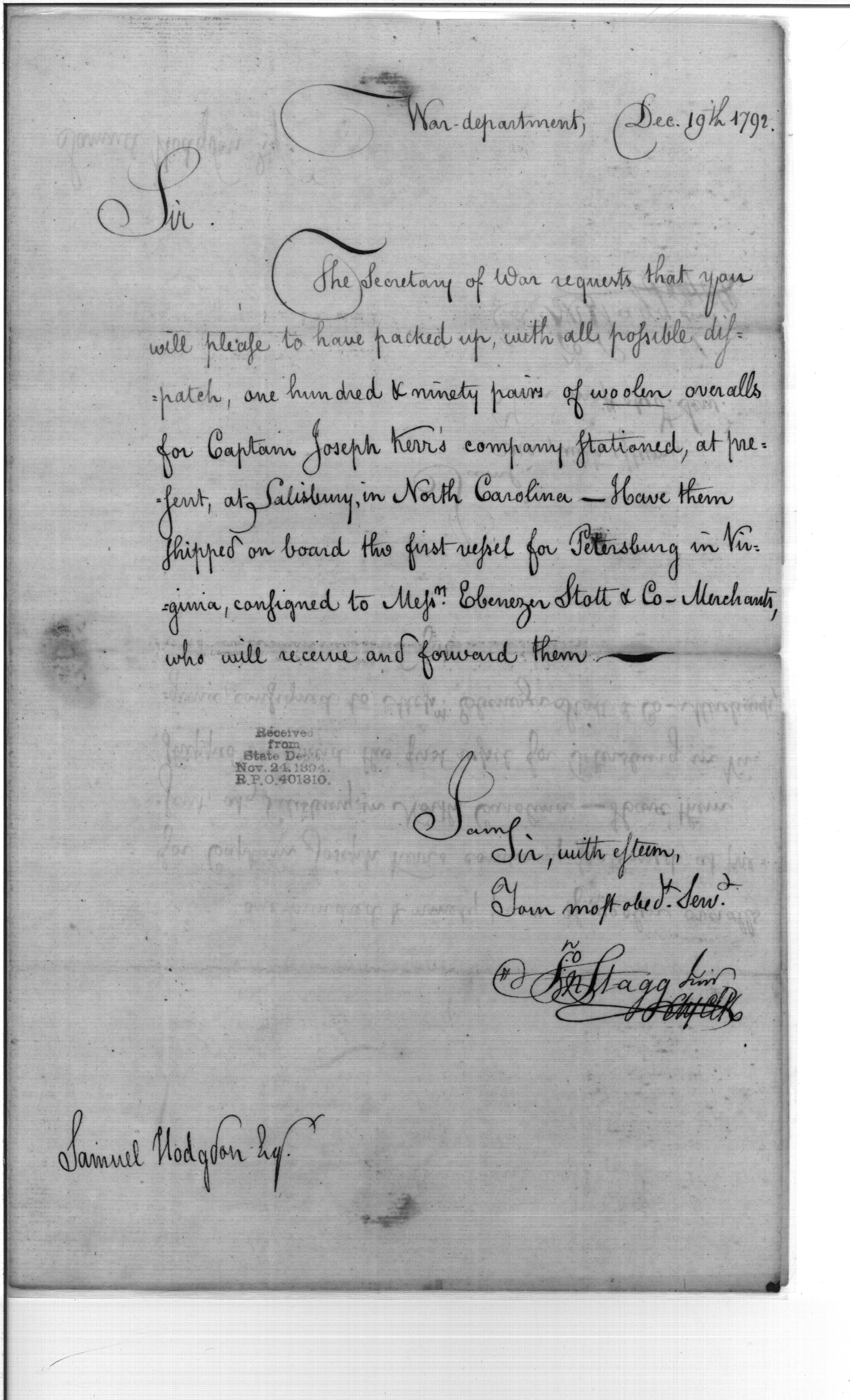 - In source: Collection: First Congress: President's Message Transmitting Reports from the Secretary of War to the Senate [1A-E4] (RG46)