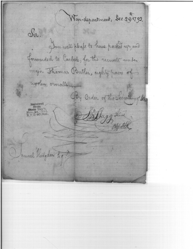 - Document: Clothing for Troops in Carlisle Pennsylvania