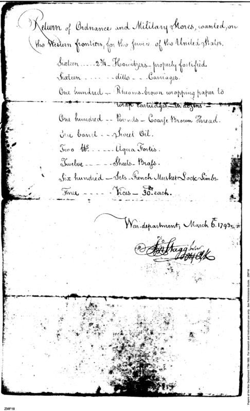 - In source: Collection: First Congress: Reports and Communications Submitted to the Senate by the Secretary of War [1A-F2] (RG46)
