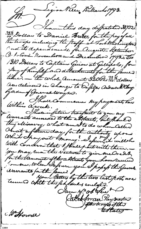 - Document: Pay of the Troops at Fort Washington