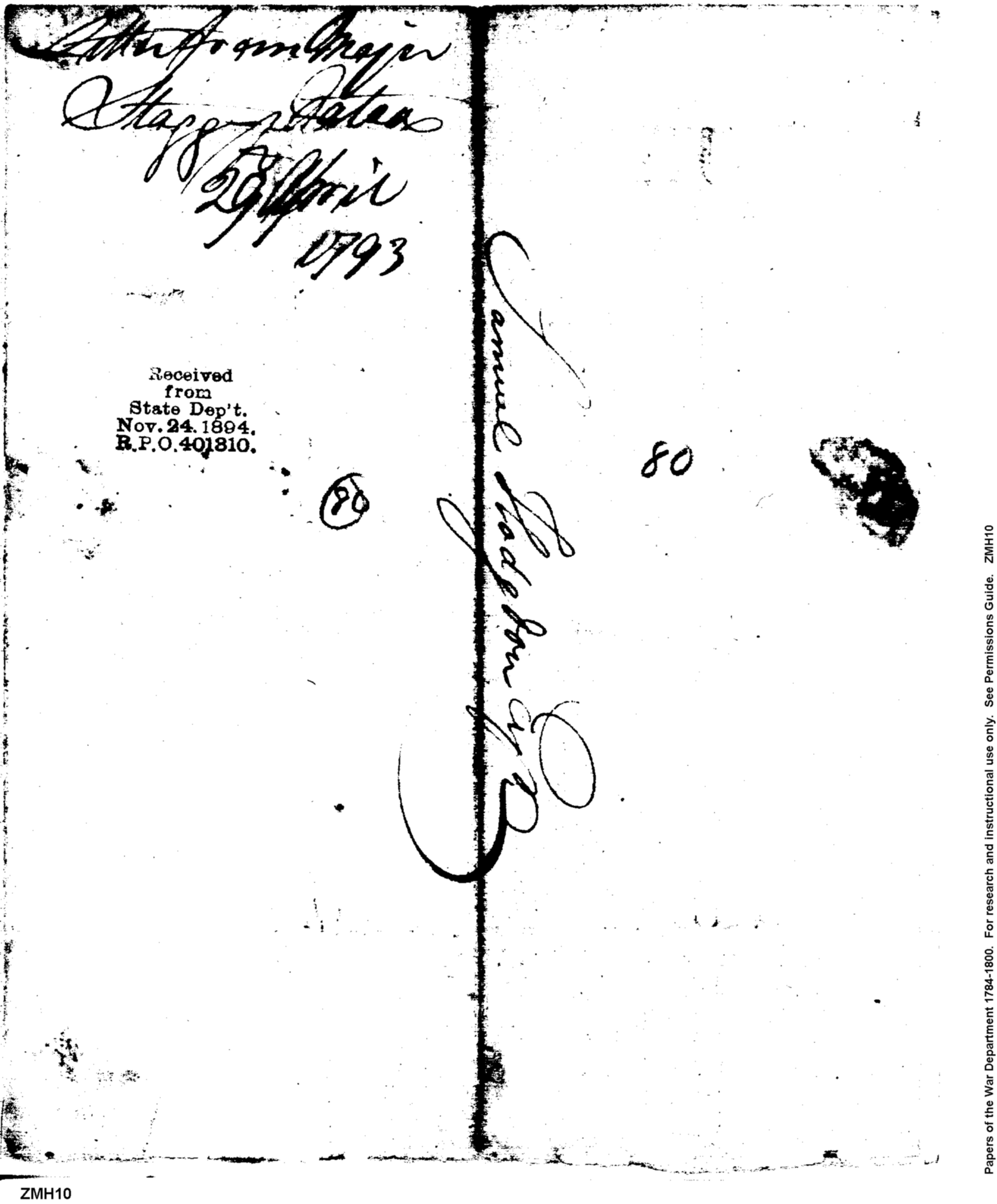 Post Revolutionary War Papers, 1784-1815. (RG94)
