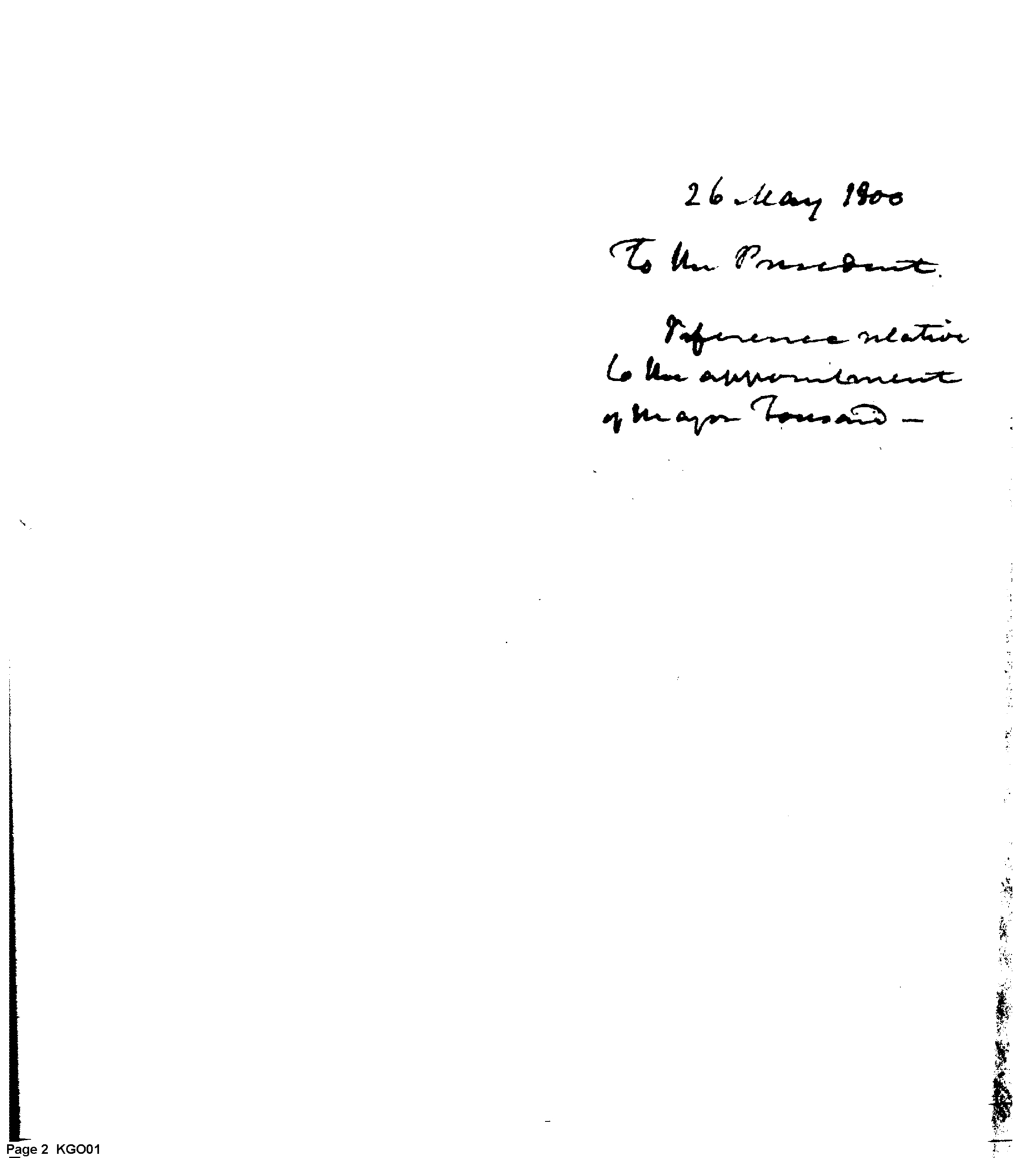26 May 1800 To the President. Reference relative to the appointment of Major Tousard --