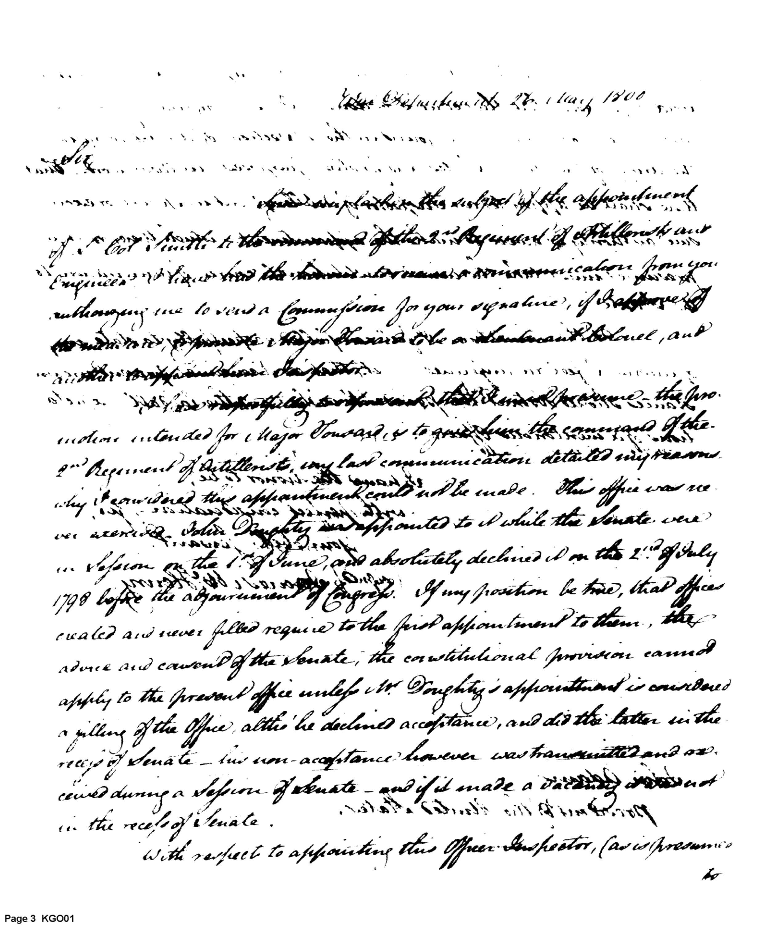 Appointment of Major Tousard: Page #3 Original title: 1800/kgo01_3.jpg Transcribe Browse revision history View notes 3 of 4 Reset Transcription [No transcription]