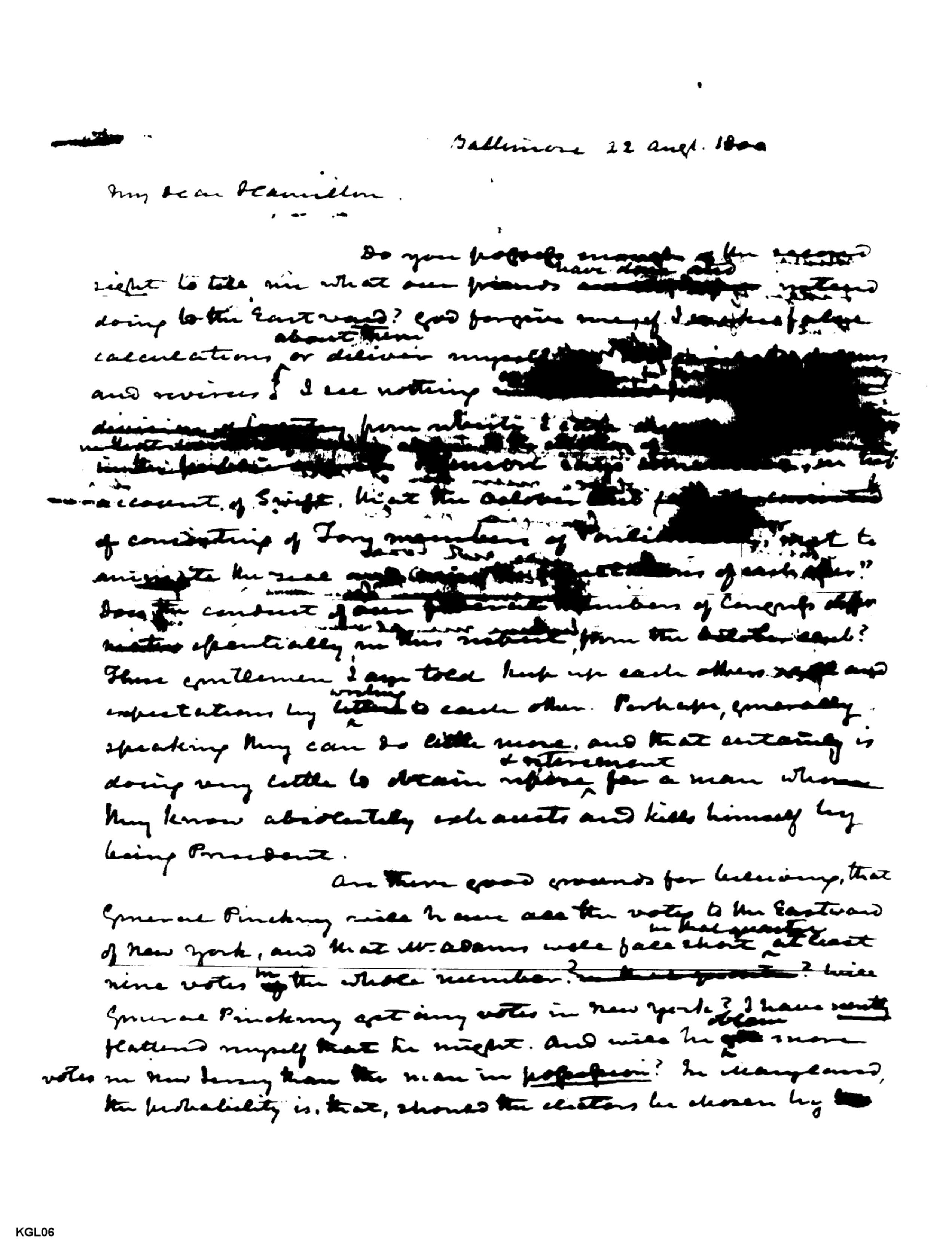 On the Presidential Election of 1800: Page #2 Original title: 1800/kgl06_2.jpg Transcribe Browse revision history View notes 2 of 3 Reset Transcription My Dear Alexander Do you [?] enough at