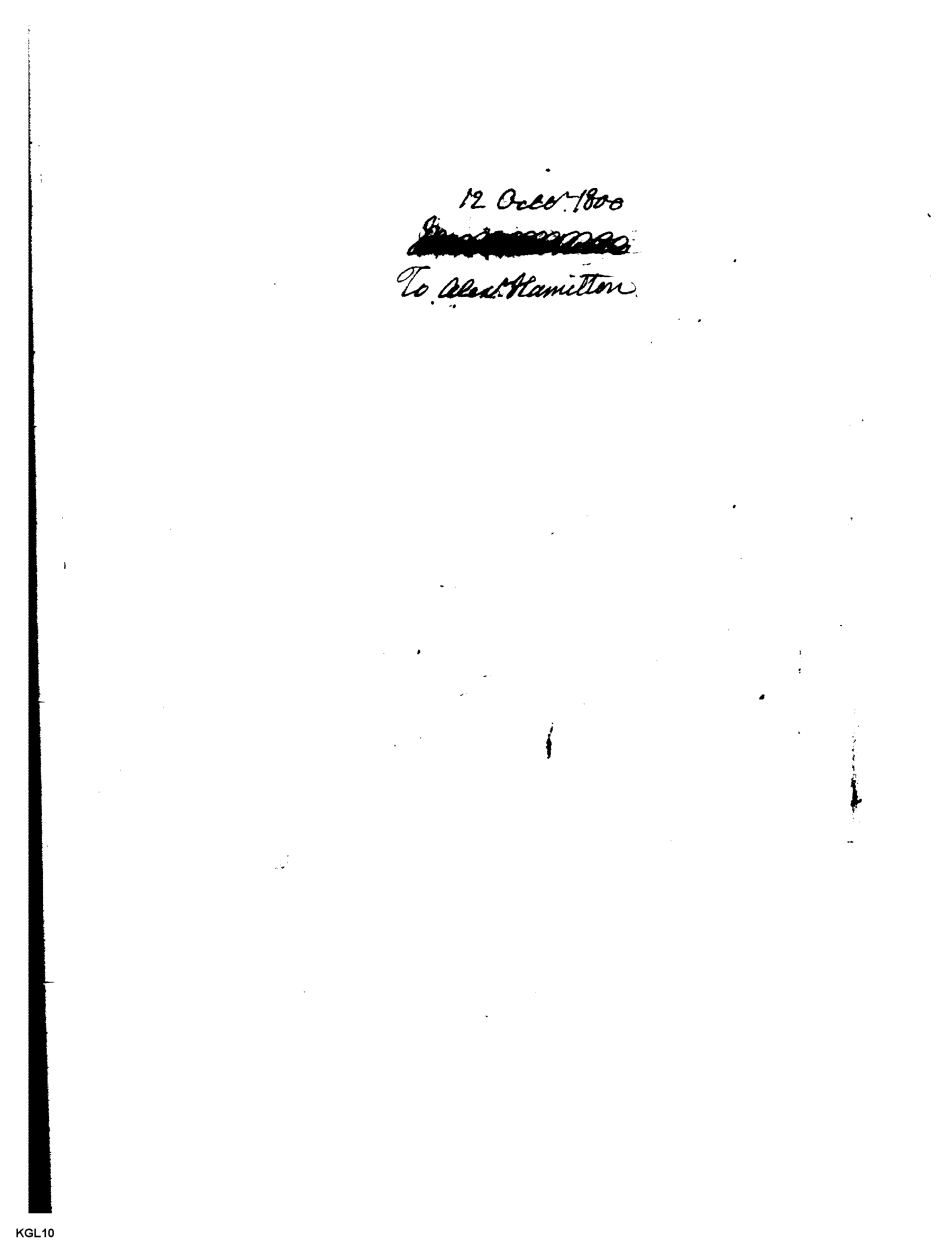 Hopes for a President Charles Pinckney: Page #1 Original title: 1800/kgl10_1.jpg Transcribe Browse revision history View notes 1 of 2 Reset Transcription 12 Oct 1800 To Alex Hamilton