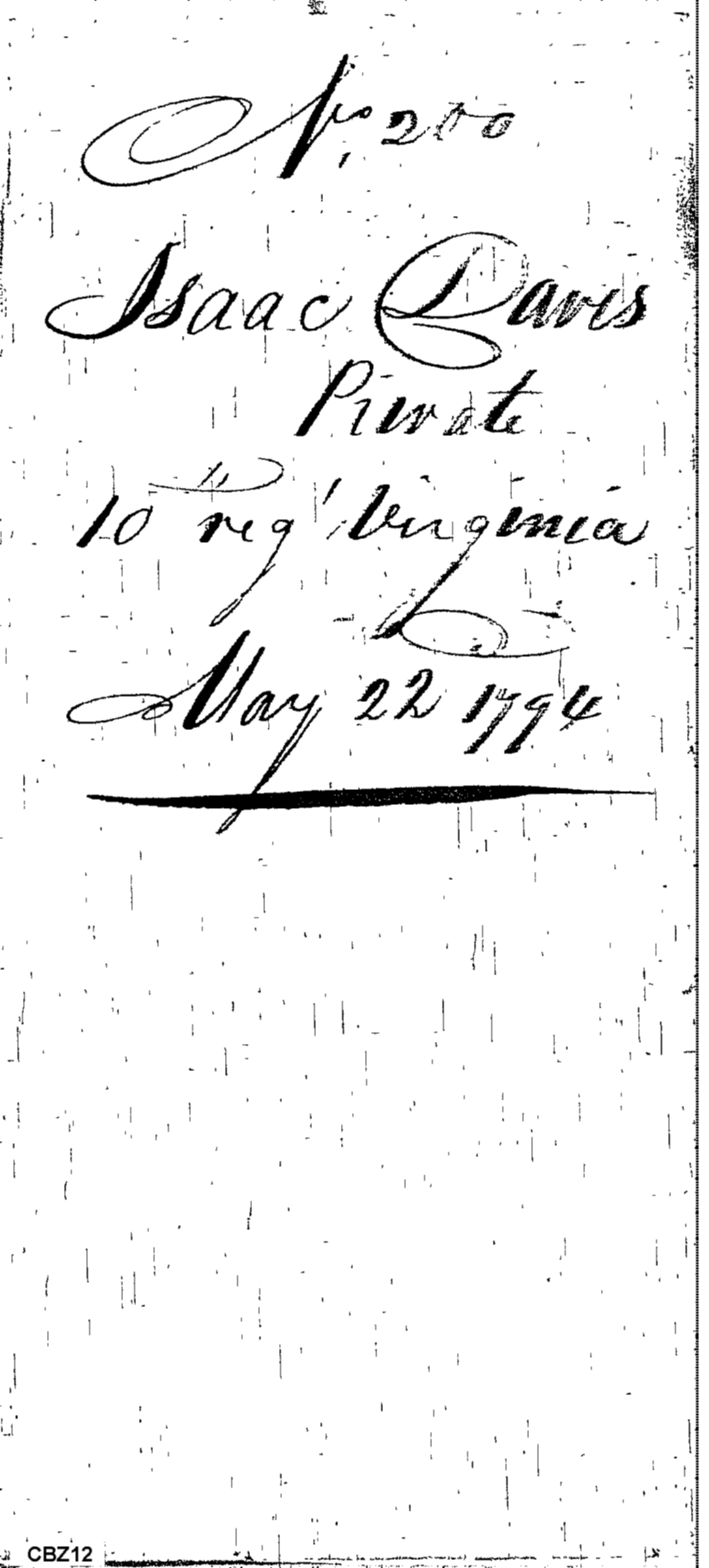 No. 200 Isaac Davis Private 10th regt. Virginia May 22 1794 _______________________