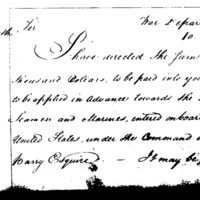 Lieutenant James Triplett calls for money to discharge demands incurred at Alexandria Virginia for enlisting seamen and marines for the frigate Constellation.